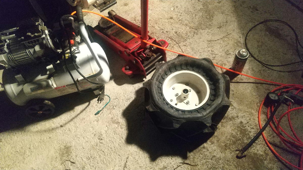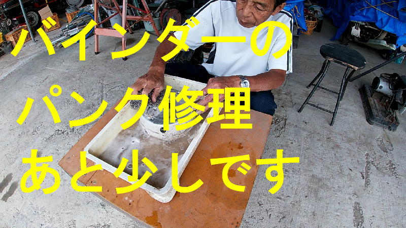 バインダーのタイヤ、パンク修理してます