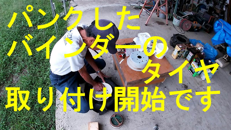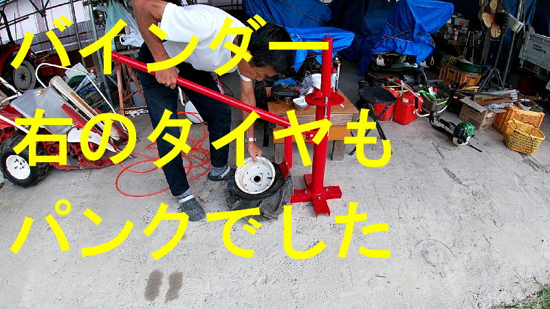 バインダー、右のタイヤもパンクでした