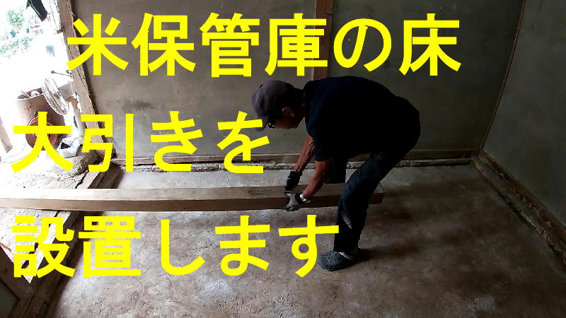 米保管庫の床の大引きを設置しています