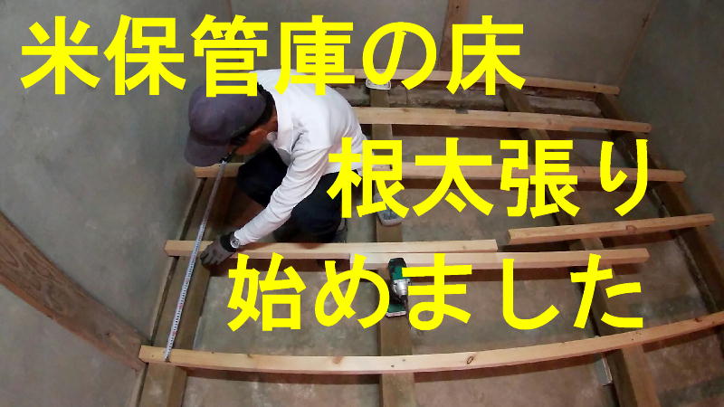 米保管庫の床、根太を貼り始めました