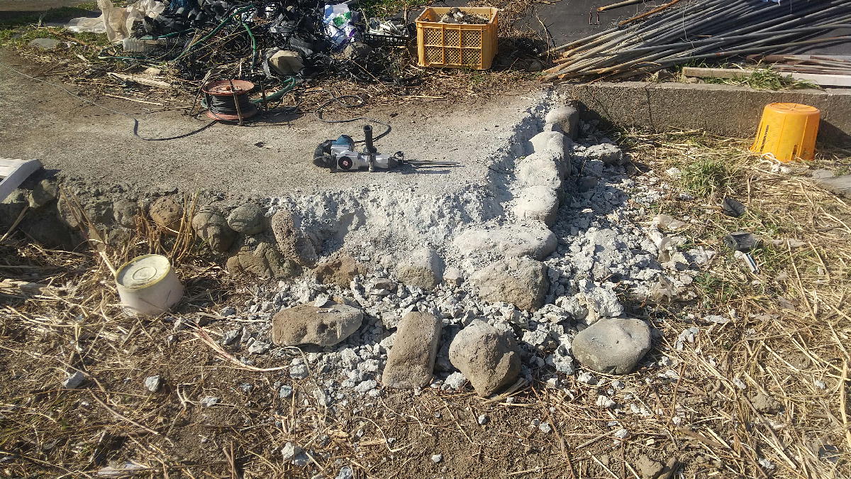 あとでユンボで持ち上げるとき、転びそうになりました。