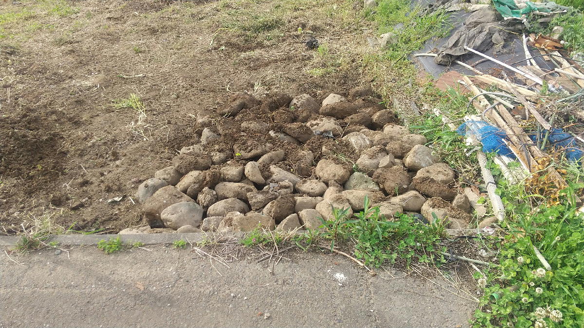 あとは向こう側の高い土をこちらの低い側に均せば水田に戻せます。