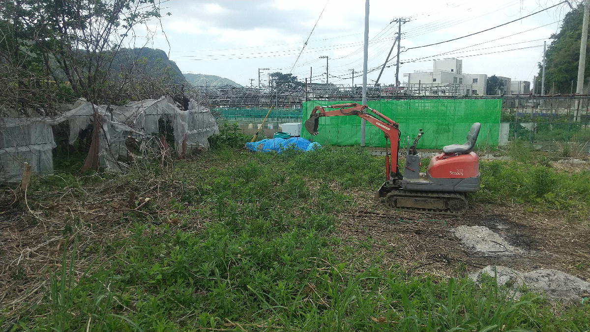 トタンの小屋をユンボで解体しました
