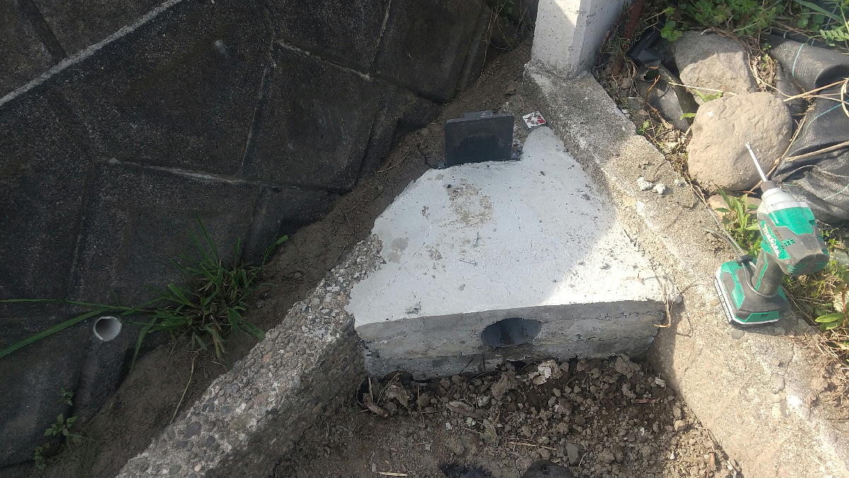 こちら側は排水なので、型枠を立てて、垂直に近くしないと広げられません。
