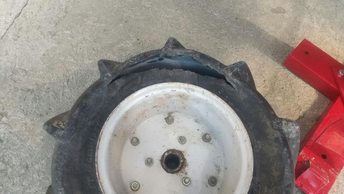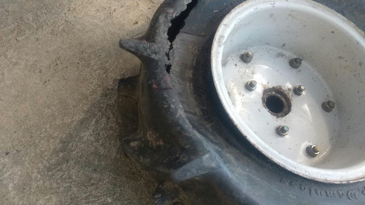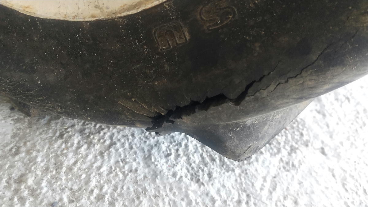 重さで完全にタイヤが裂けてしまいました。