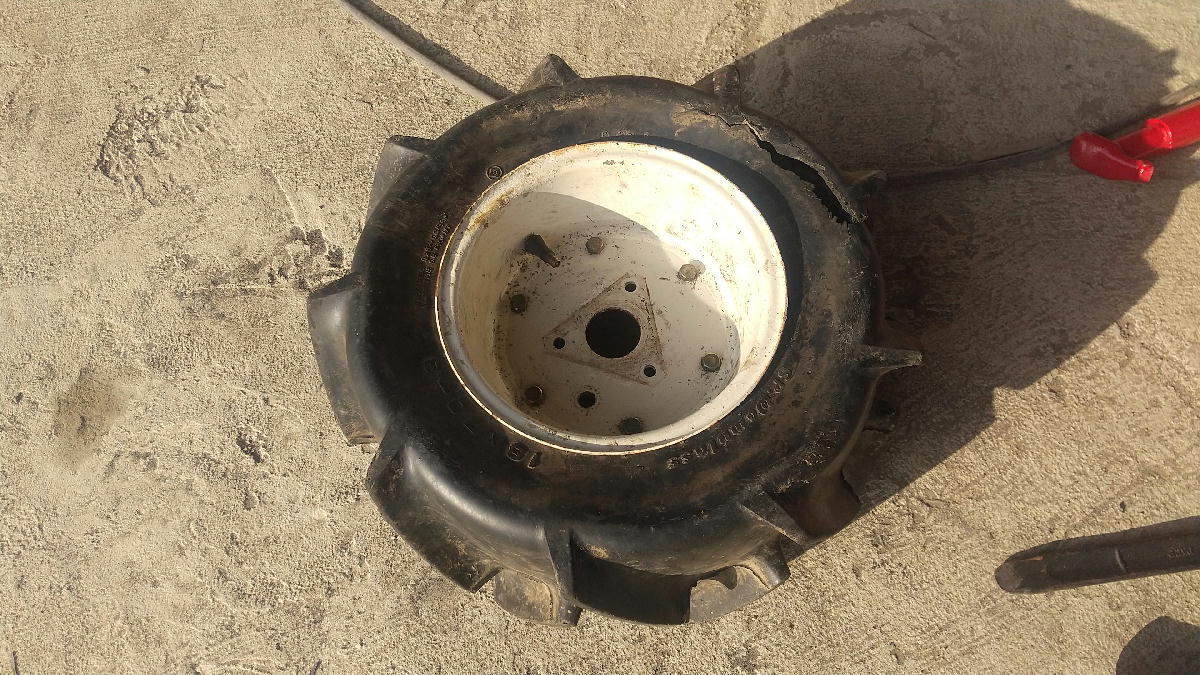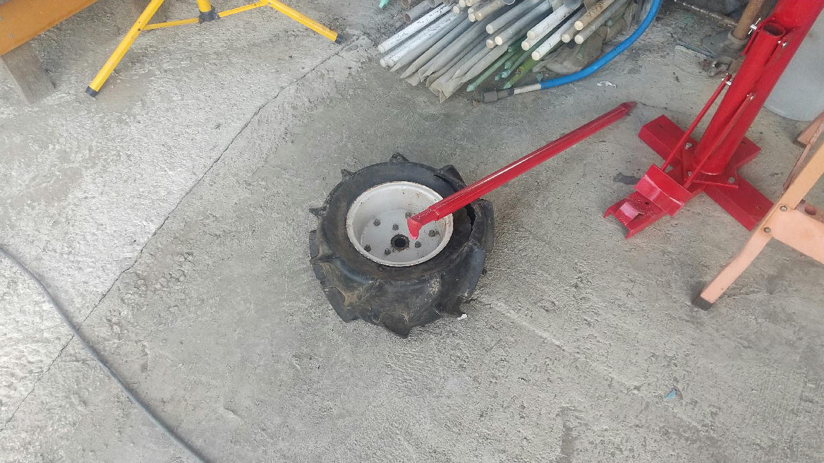 これでタイヤレバーを入れて、回せばタイヤが外れます。