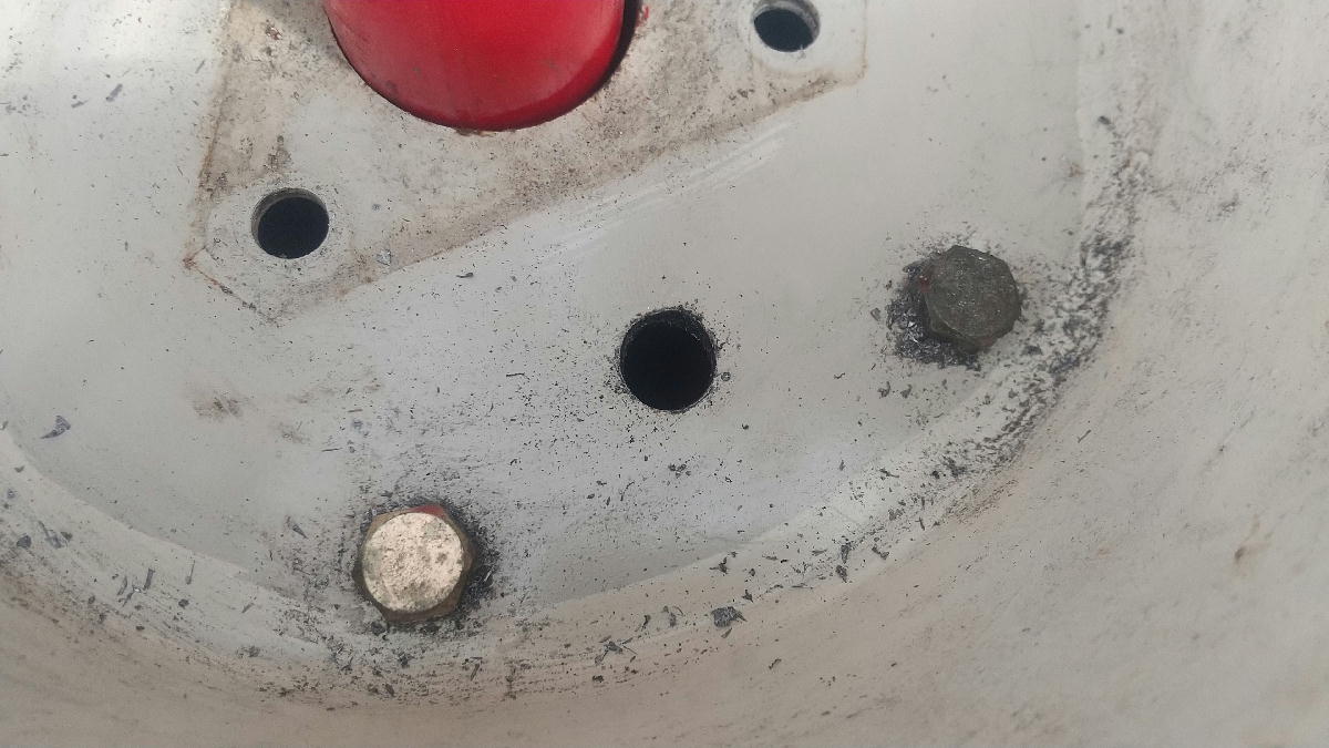 仕方がないので、機械の台座に穴を開けて、ボルトを通しました。