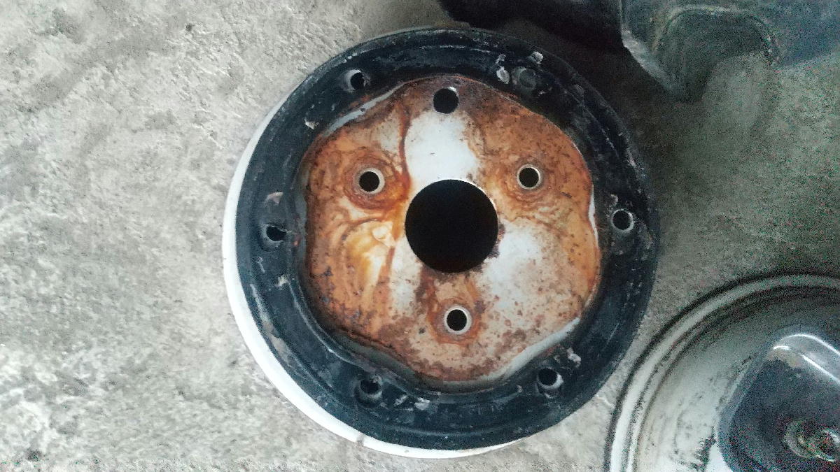 チューブレスタイヤなので、空気が漏れないように、2枚を合わせているホイールの真ん中にゴムのパッキンが挟んでありました。