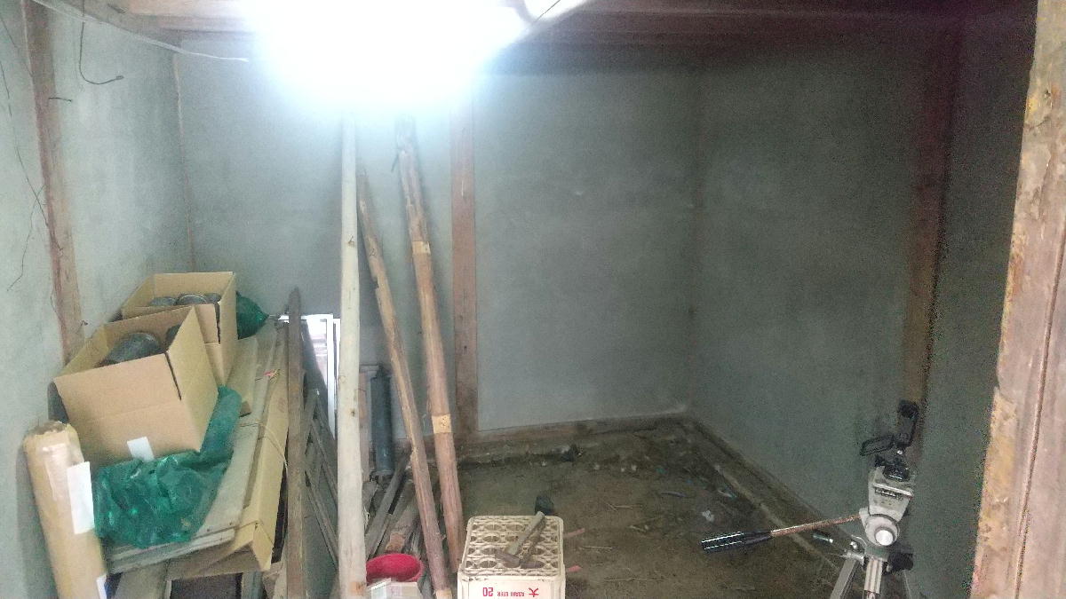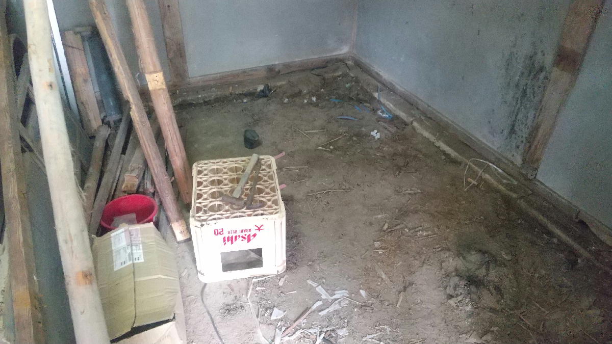 下は土間でした。 次はブロックの基礎を置いて、根太を置いて、コンパネで床を作ります。 その前に、シロアリがわかないように、コンクリで地面を固めようと考えています。