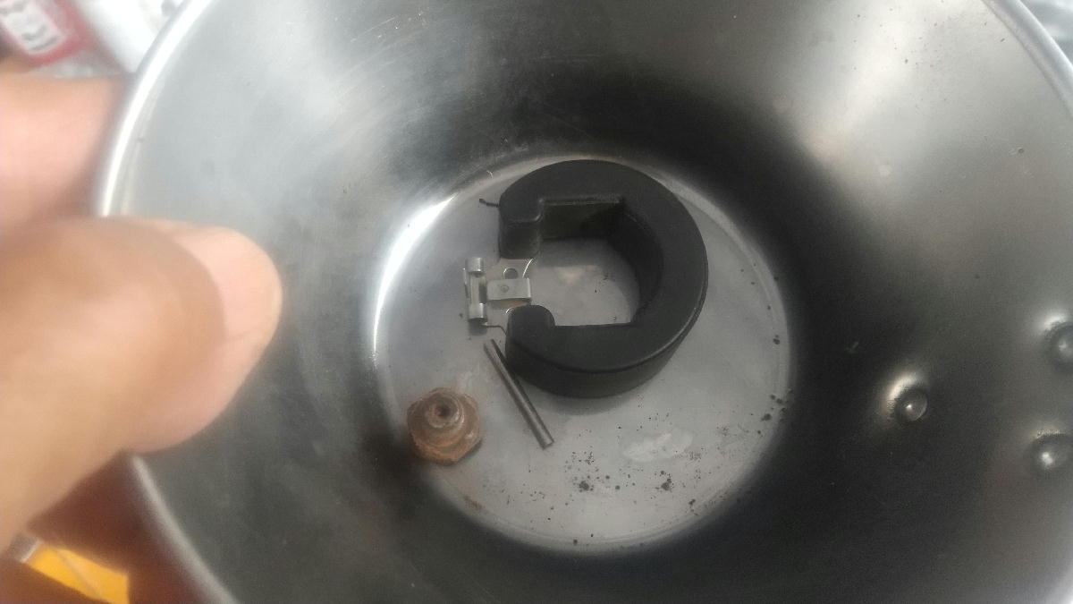 場所が分かって、浸透潤滑スプレーを掛けながら、タガネとハンマーで叩いて動かしました。