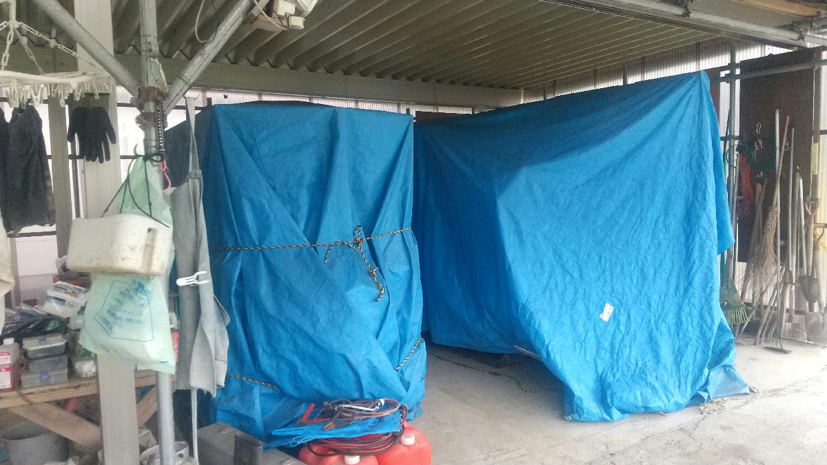 午後に張り込みを終えて、しばらく通風乾燥してから、灯油を燃やして乾燥させています。
