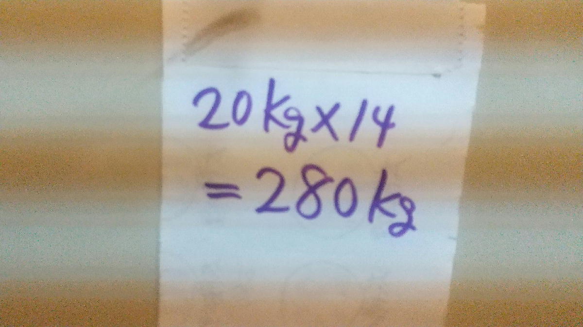 今日は、段ボールに米の袋を入れるみたいに入れる時みたいに、平たいコンテナの上で、パンパン叩いて平らにして入れてみました。