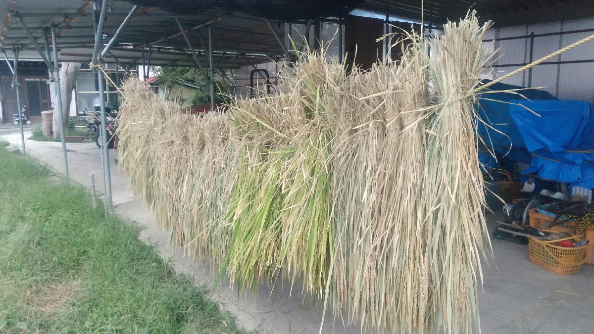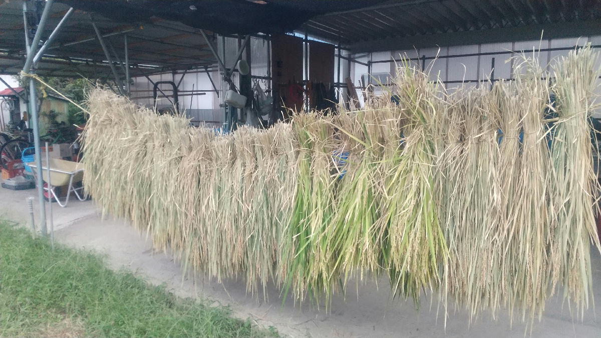 前に刈った稲は、もうかなり乾いて軽くなっていました。