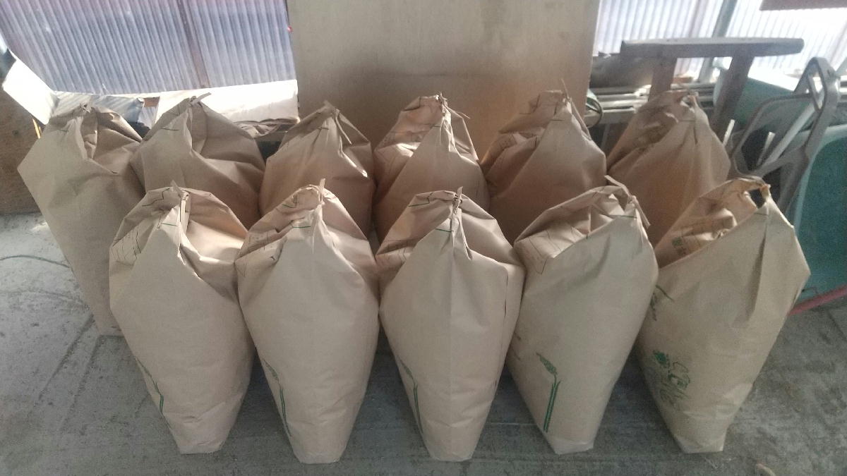 向こうの方に残っているのは、ほとんどスズメに食われて、モミが付いていません。