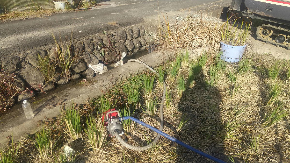 今回はエンジンポンプを田んぼにおいて、フルスロットルでやりました。