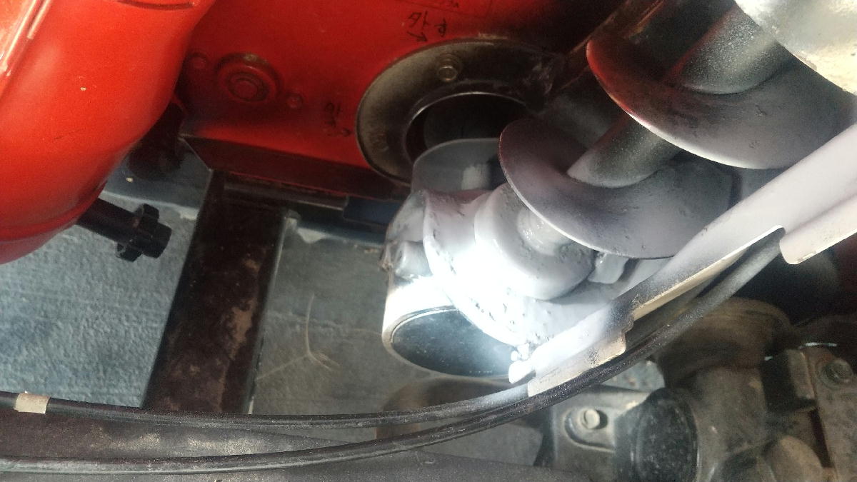1番らせんの下のカバーを開けました。 詰まっていたモミを出して、錆びていたところにサビ止めを吹き付けました。