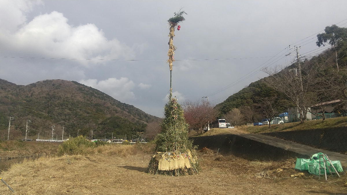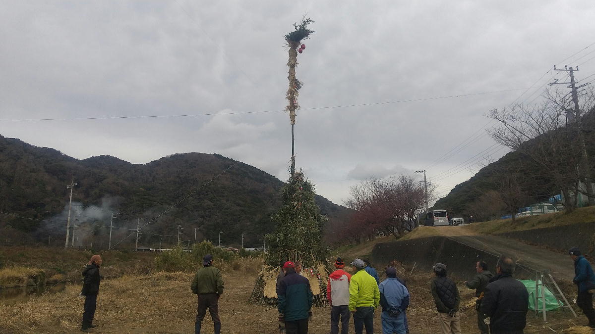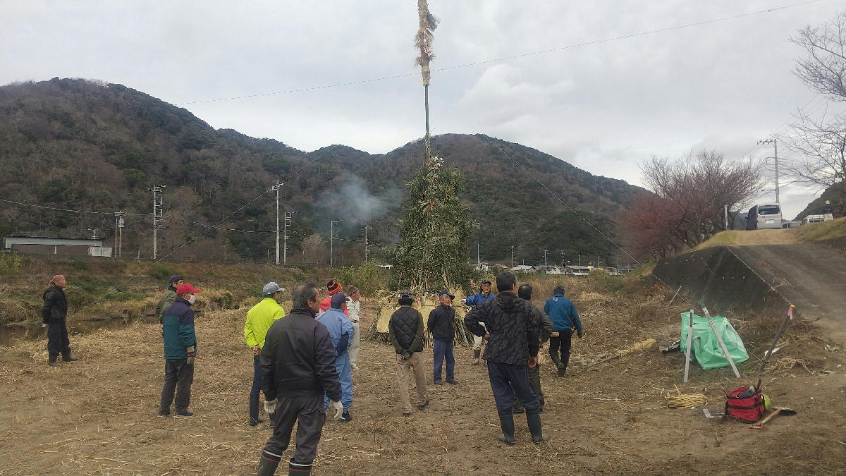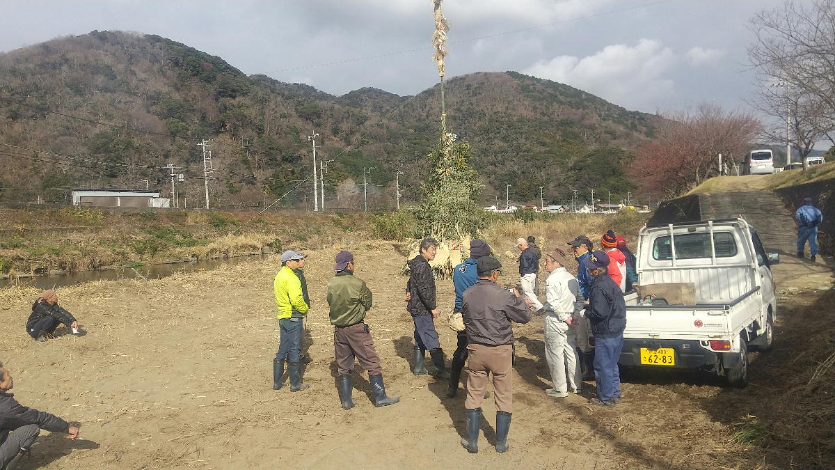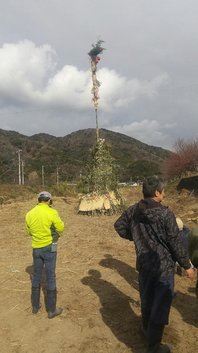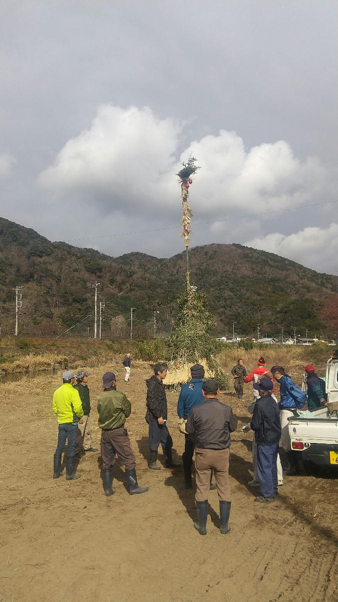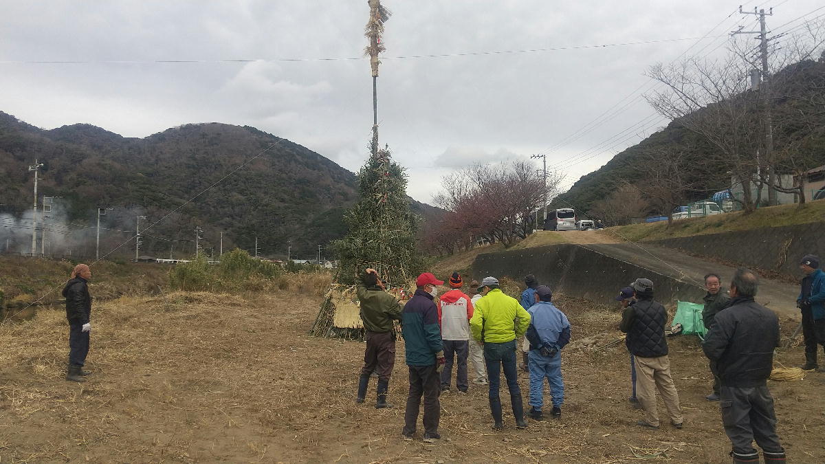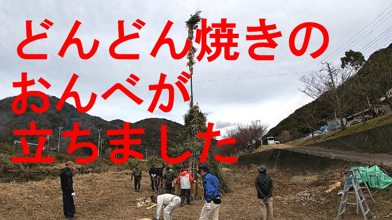 中区の伝統行事を守る会の仲間で、どんどん焼きのおんべを立てました。