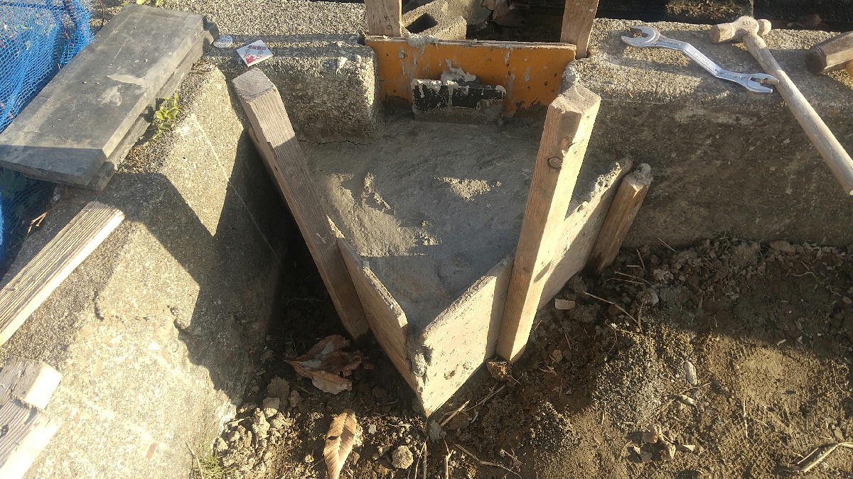 そのあと、水口ゲートのコンクリの型枠を外しました。