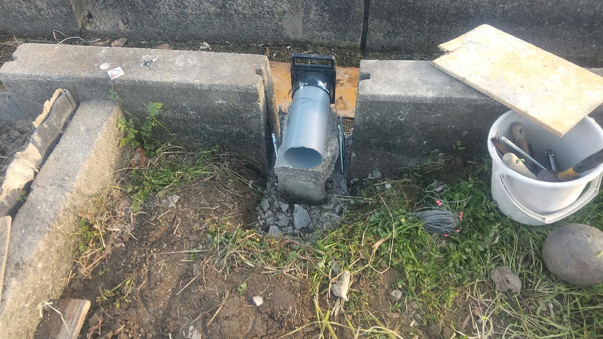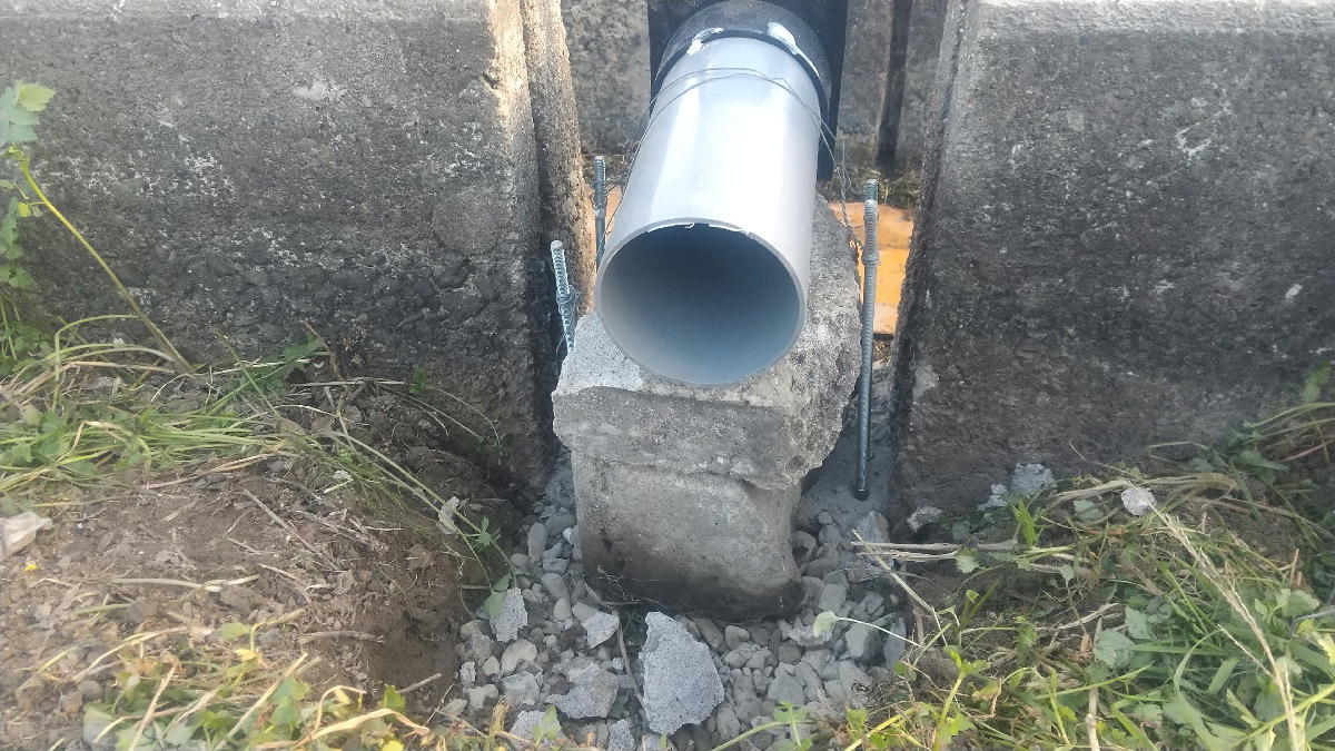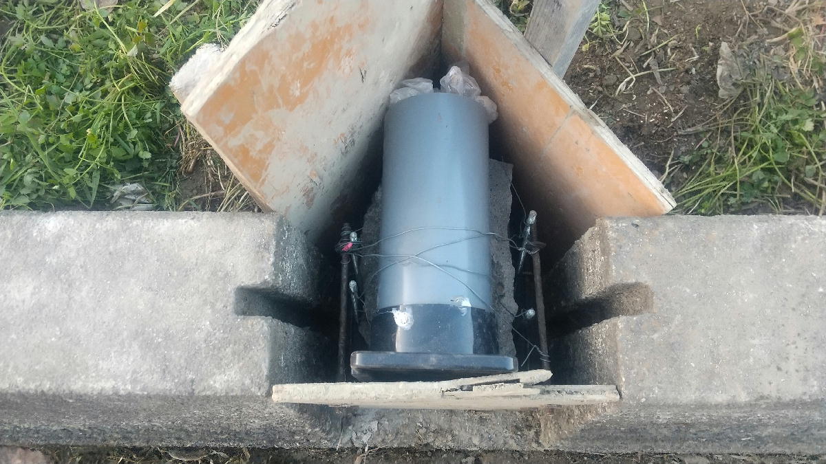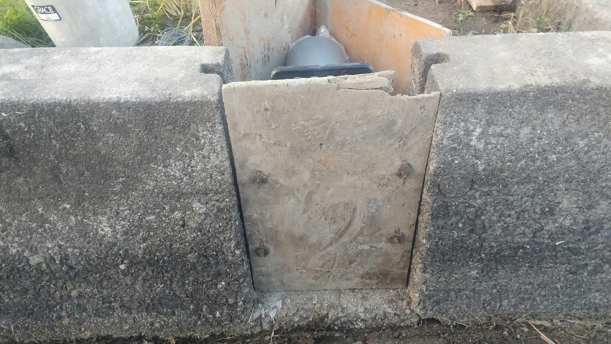 水路側は、丸セパで型枠板を止めています。