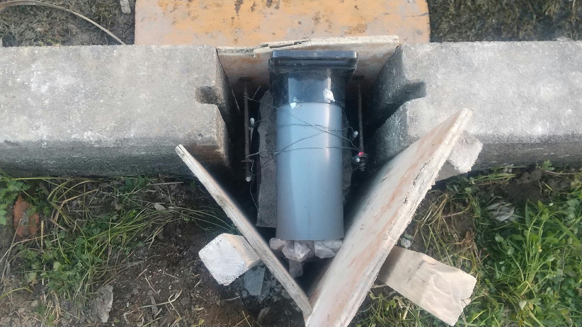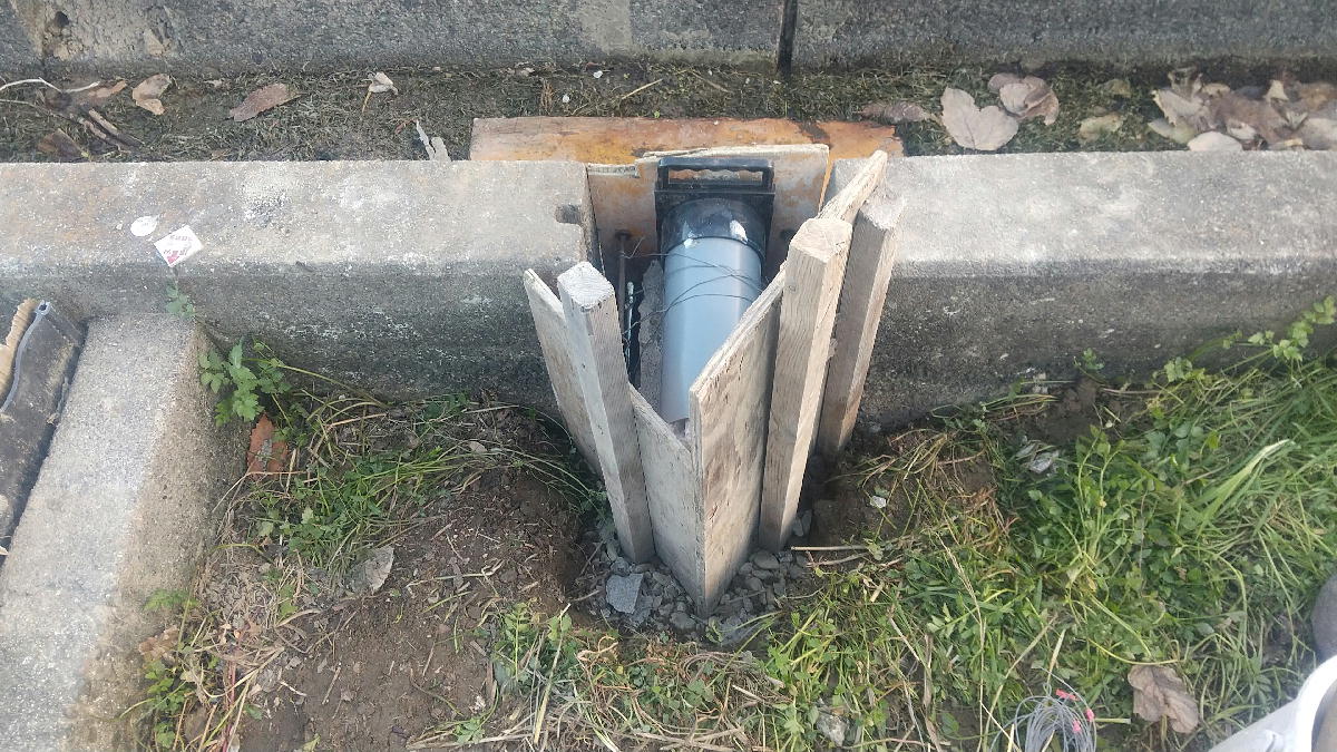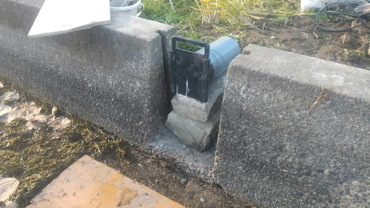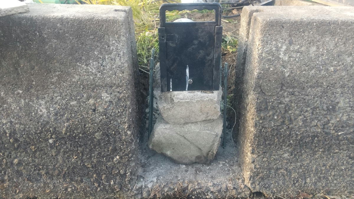 砂利を敷いて、アンカー棒を4本打ち込んで、石をのせて、その上にゲートをのせて固定しました。