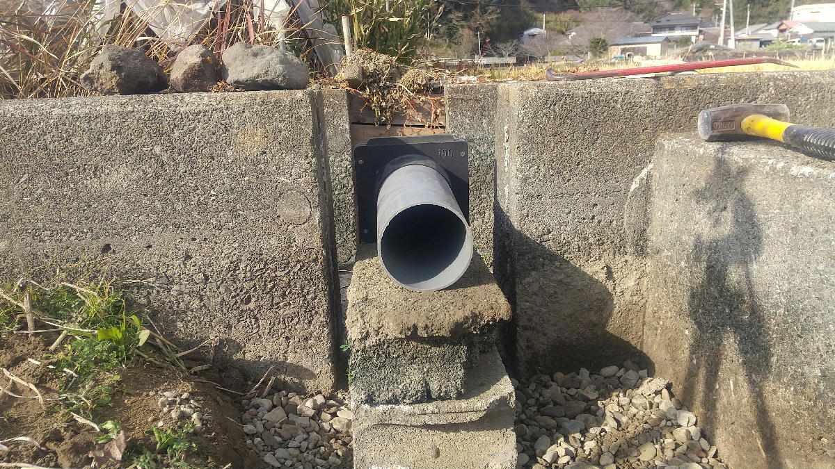 パイプにはコンクリが入らないようにビニールを詰めました。
