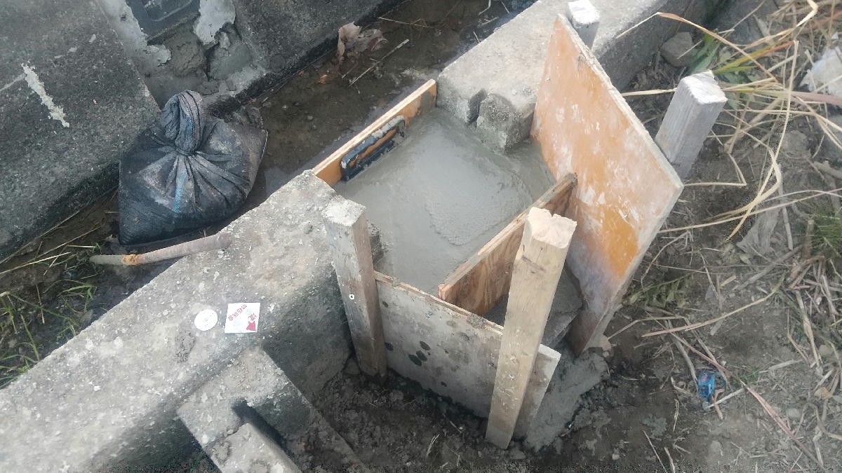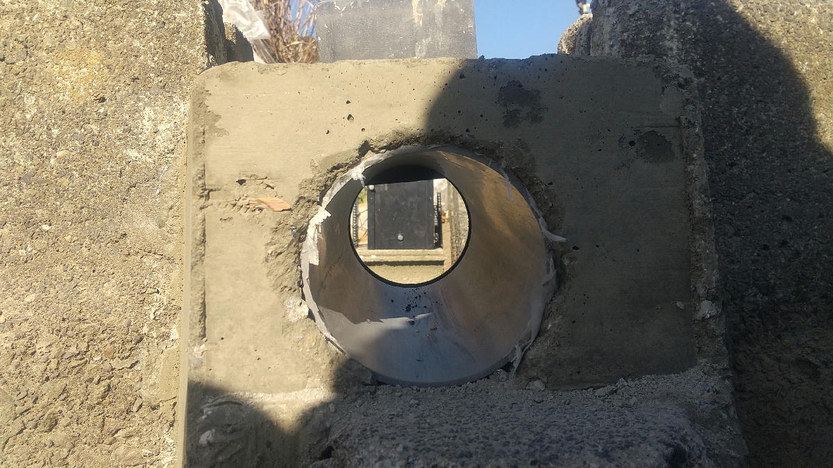 土台のブロックは、すができていますが、後ろは詰まっているので、水漏れはないでしょう。