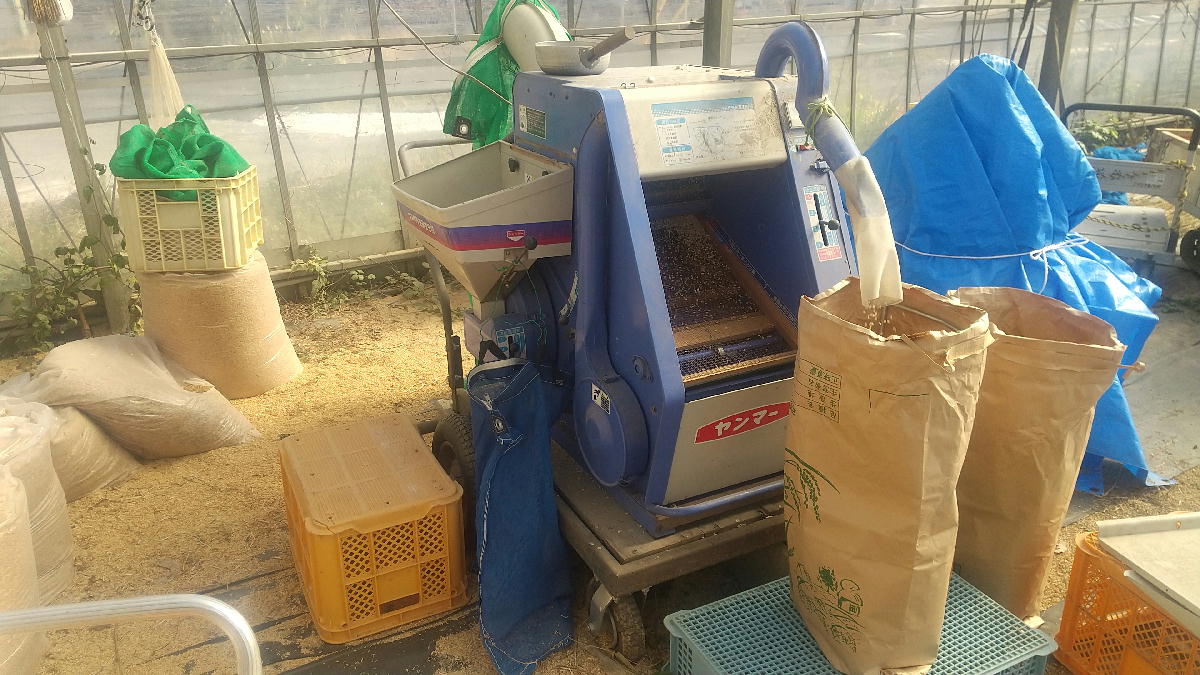 このあと、米選機にかけて、小さな草の種は取り除きますけど。