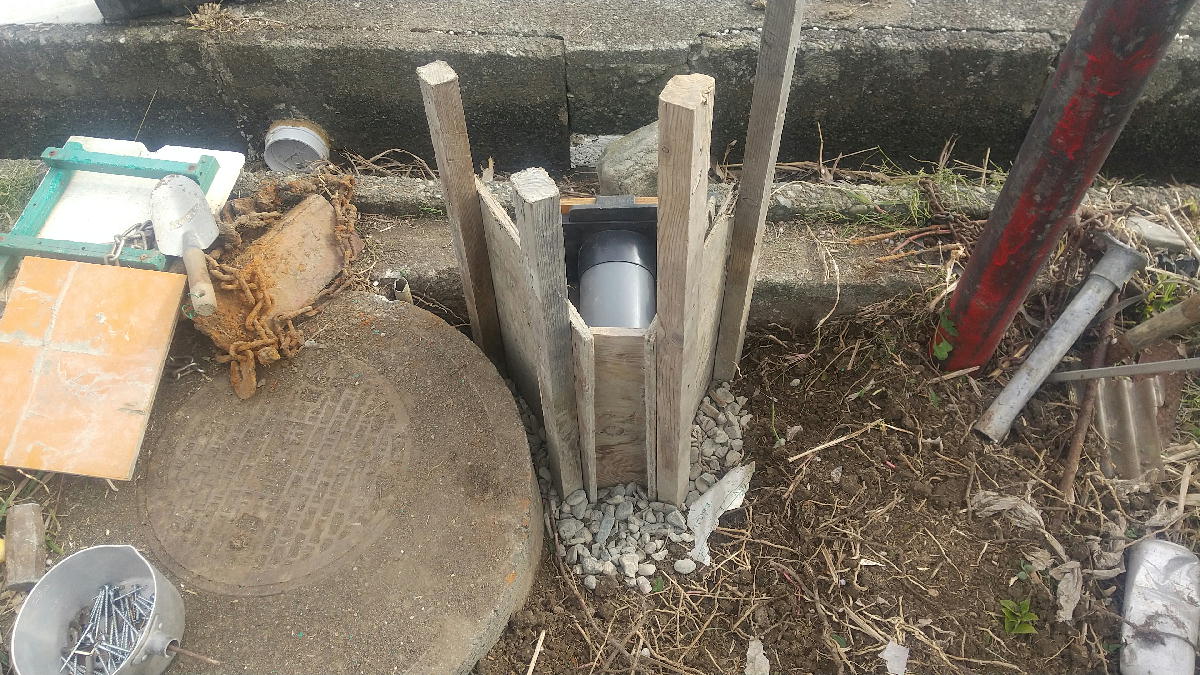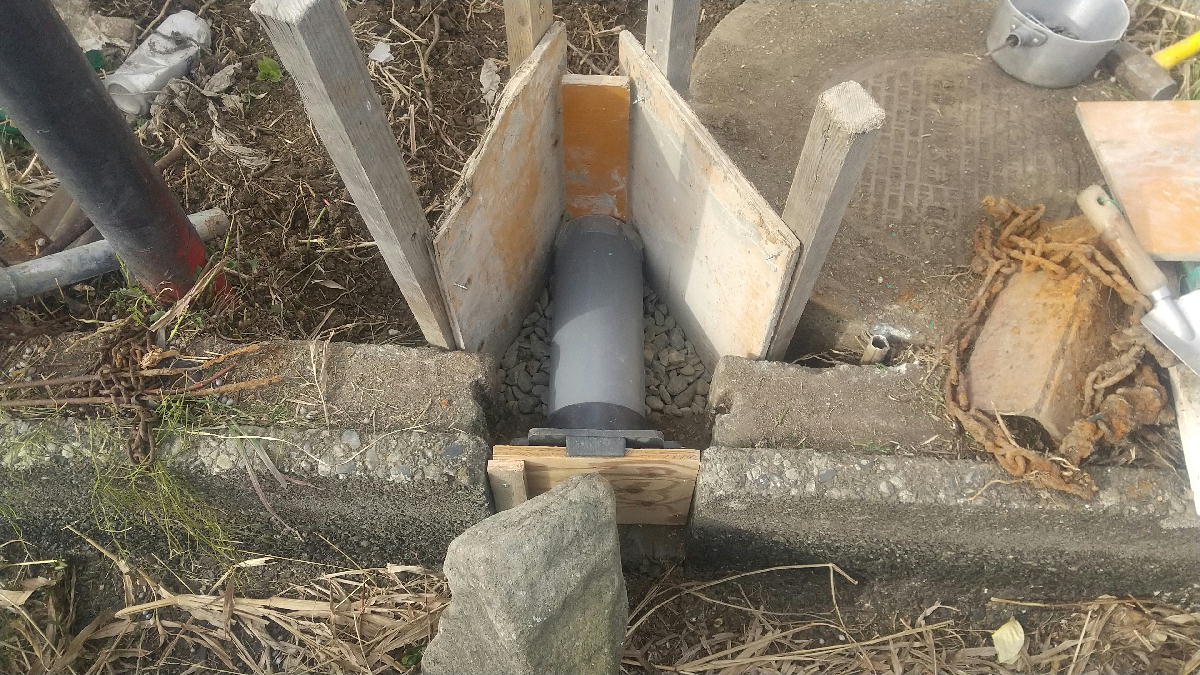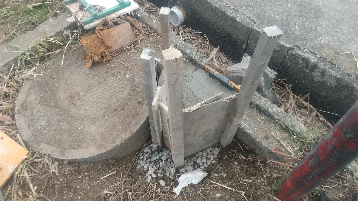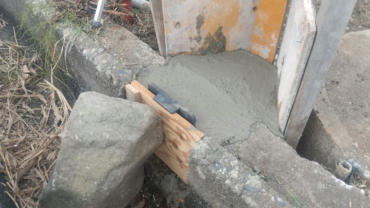 コンクリ練りバケツに1杯で埋まってしまいました。