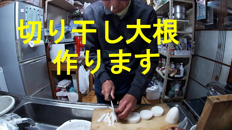 とても外で仕事出来る状態ではなかったので、家の中で切り干し大根を作りました。