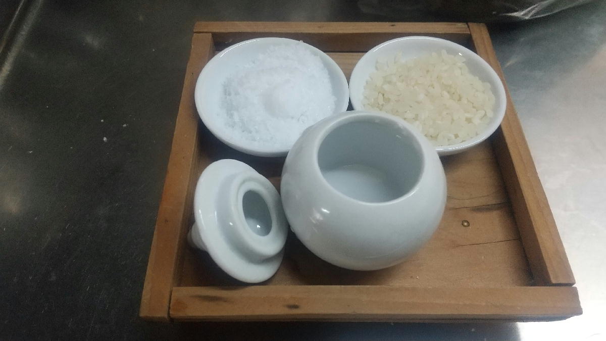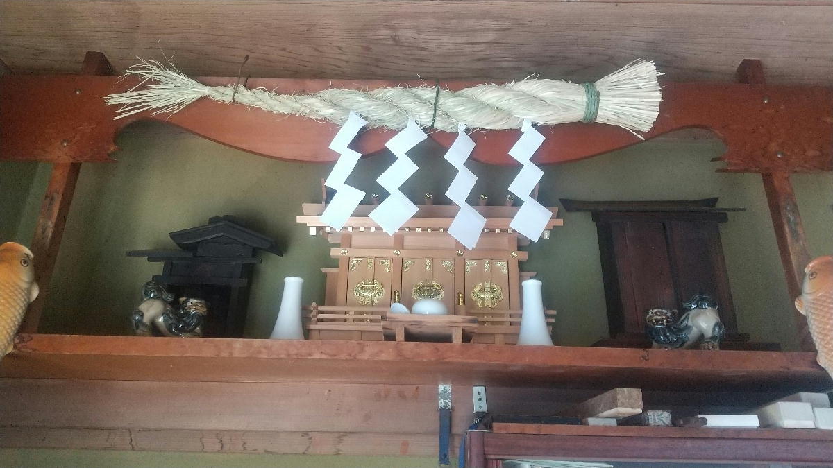 神さんのお供えの米、塩、水を換えます。