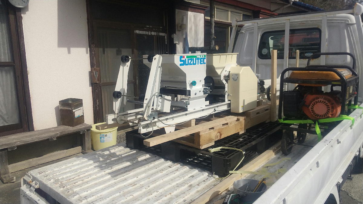 ヤフオクで買って、岐阜から届いた新しい播種機を松崎の福山通運まで取りに行ってきました。