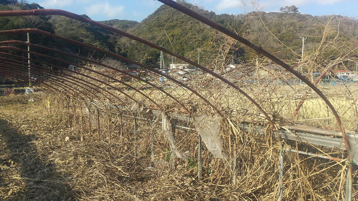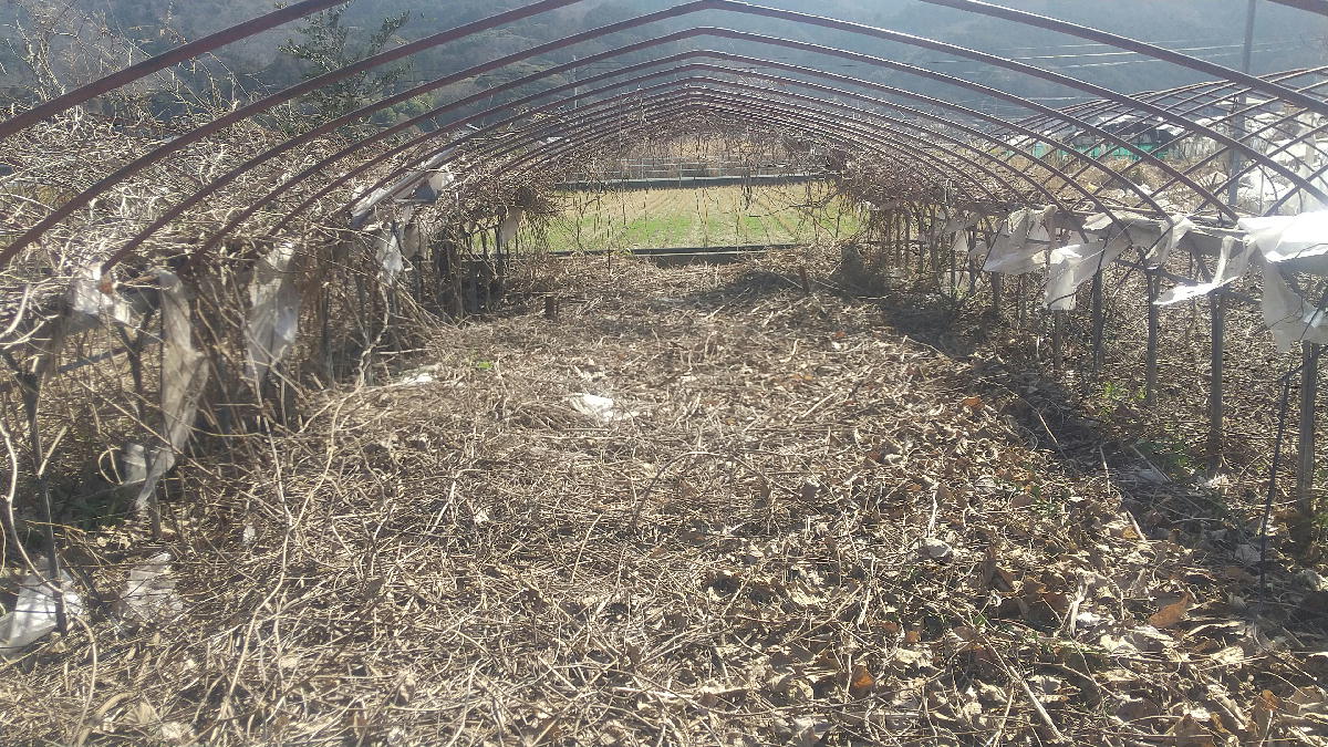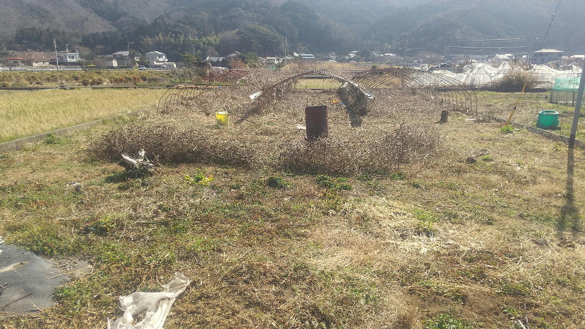 2026年2月15日(日) 放置ハウスのツル切り 3日目です