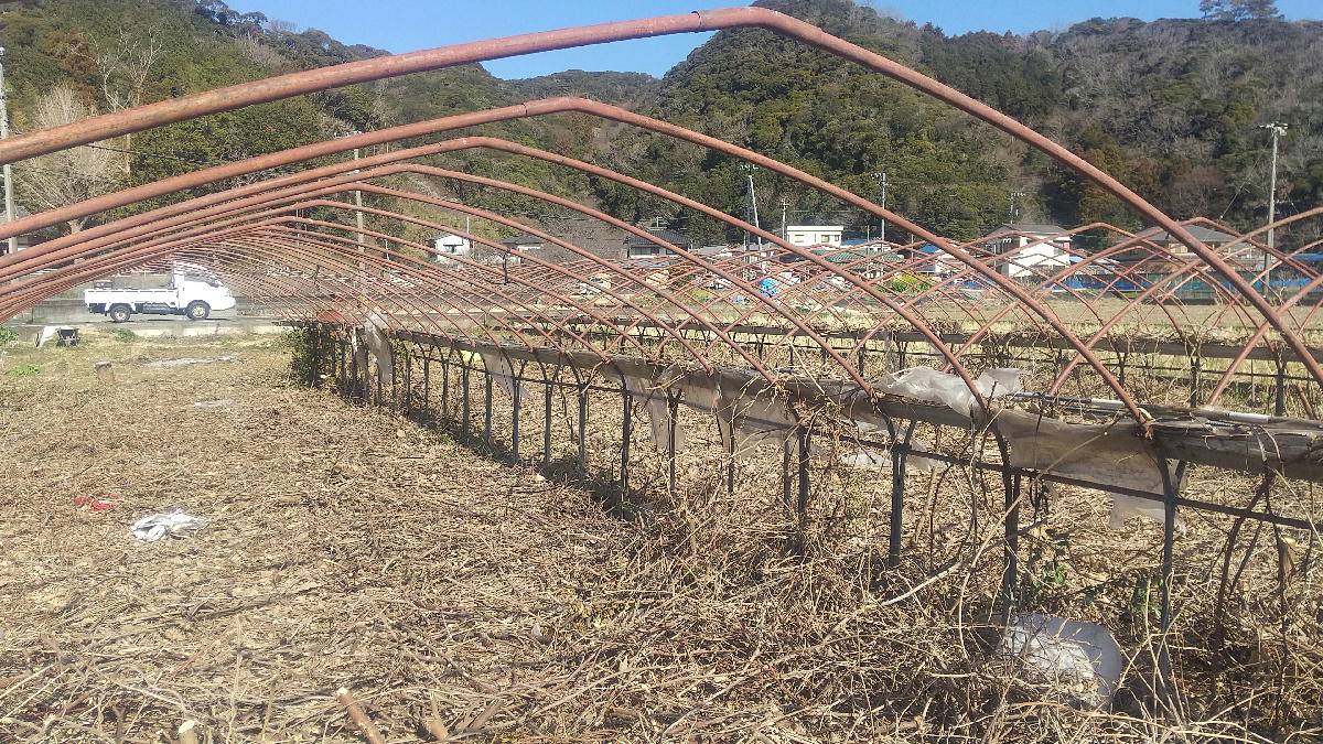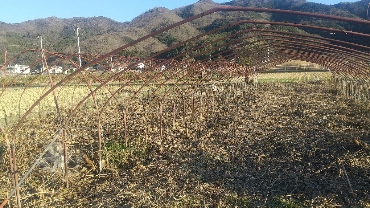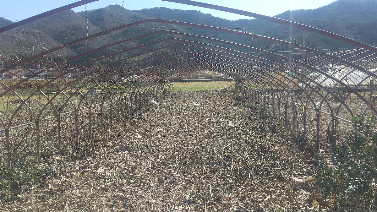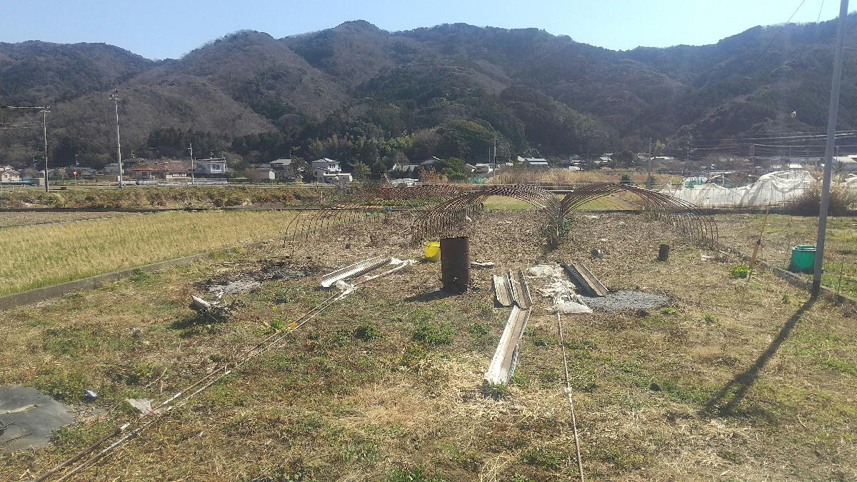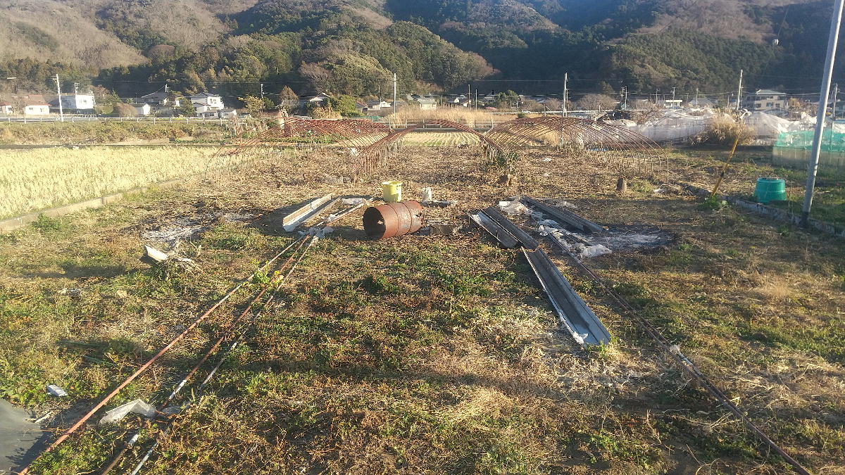 放置ハウスの雨樋を取りました