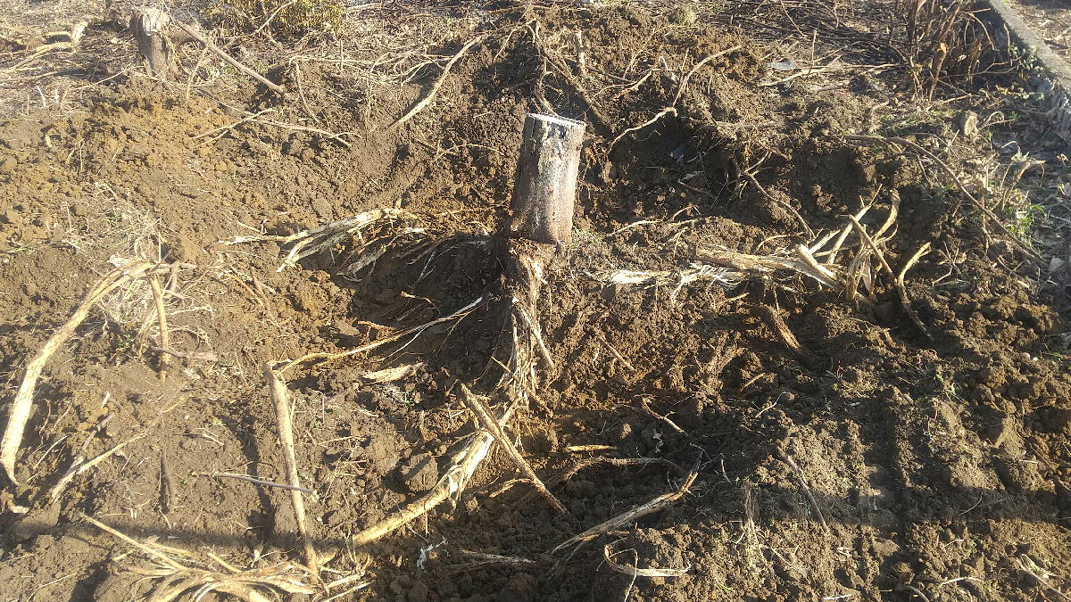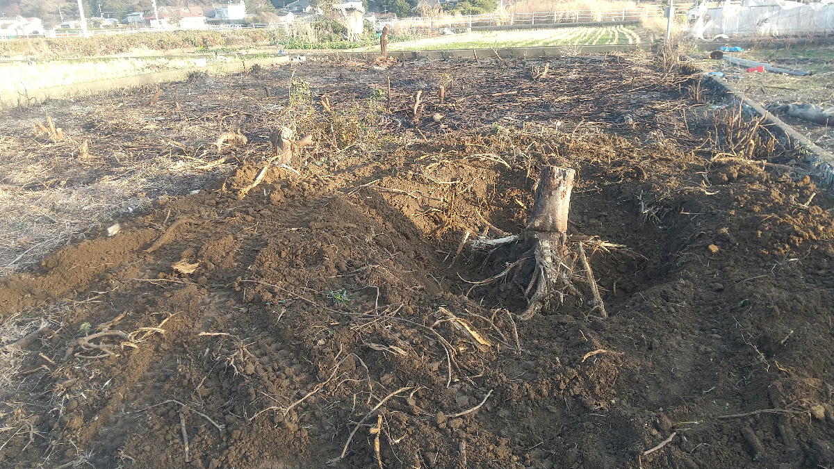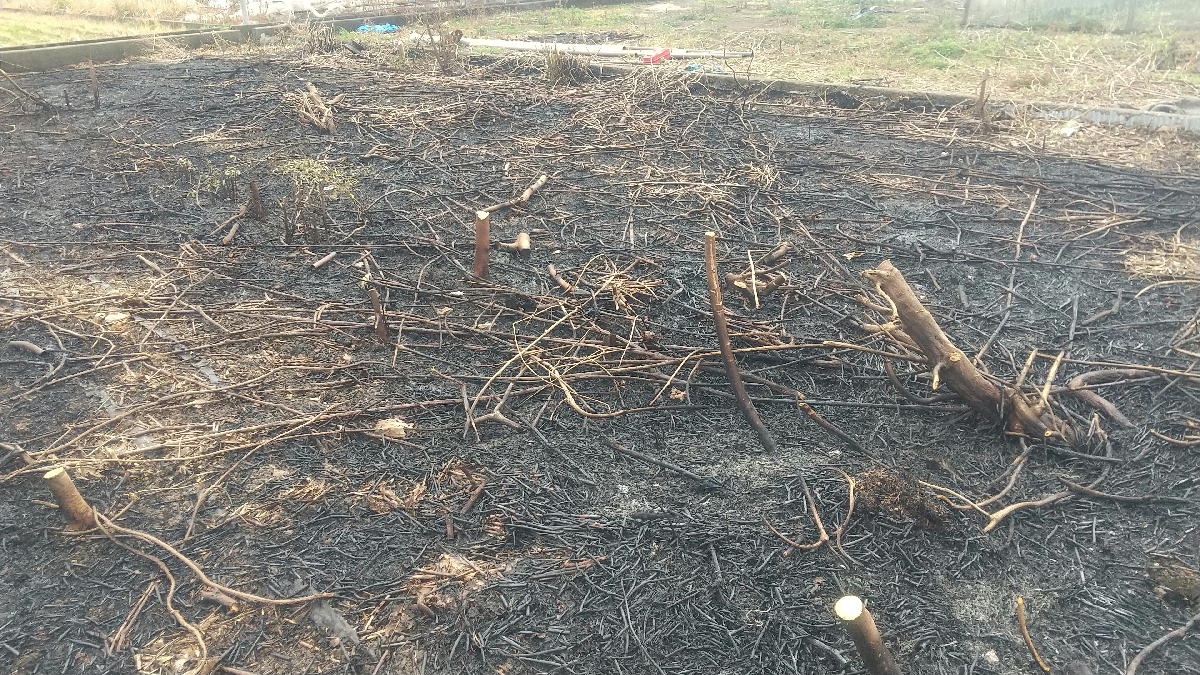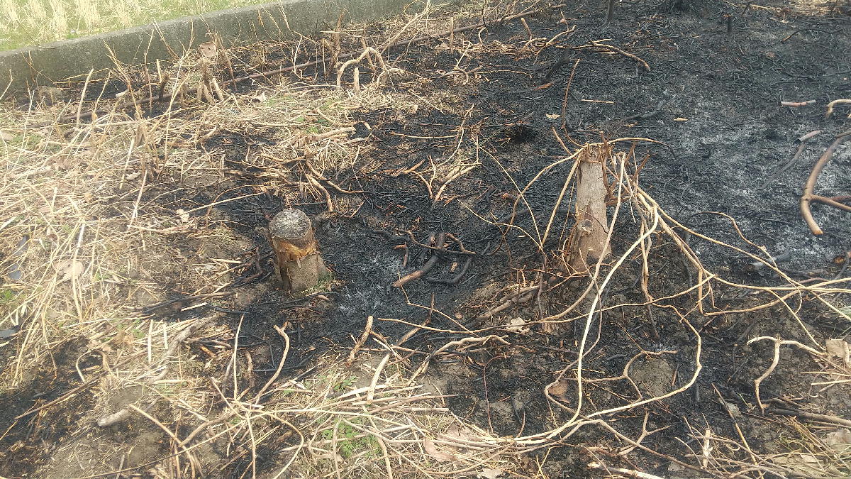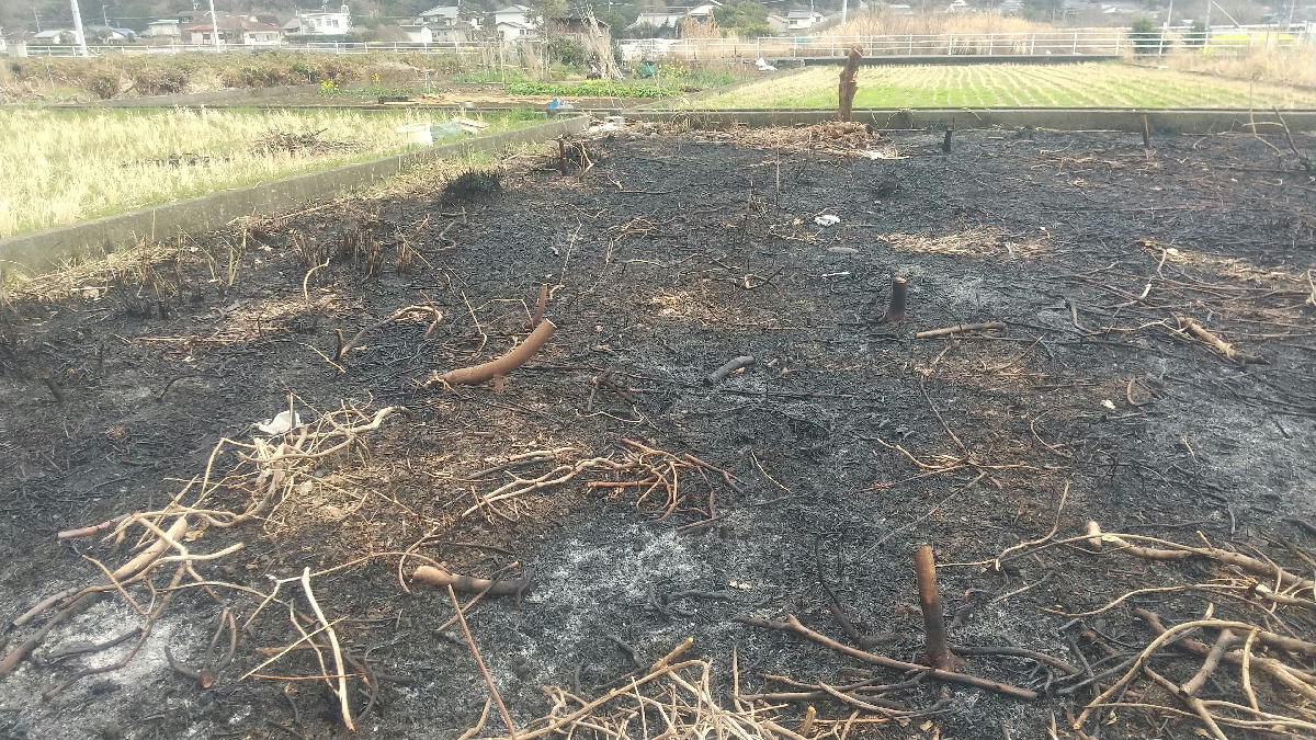 今朝、雨が降って、白かった灰が流れて、残った炭が黒くなっていました。