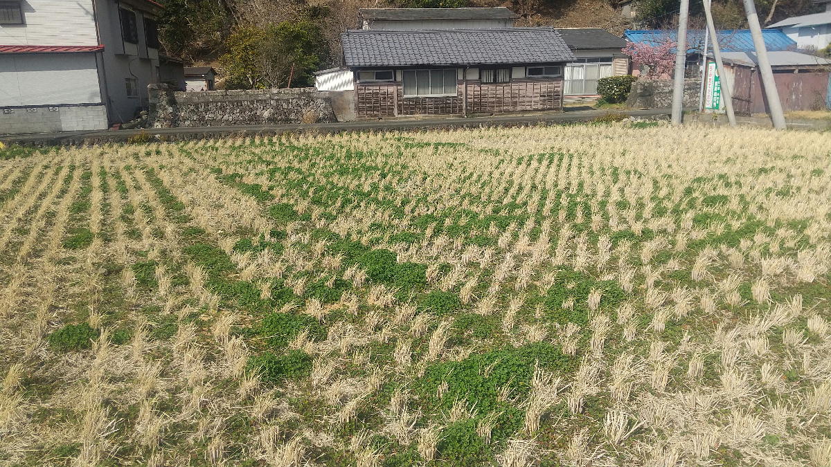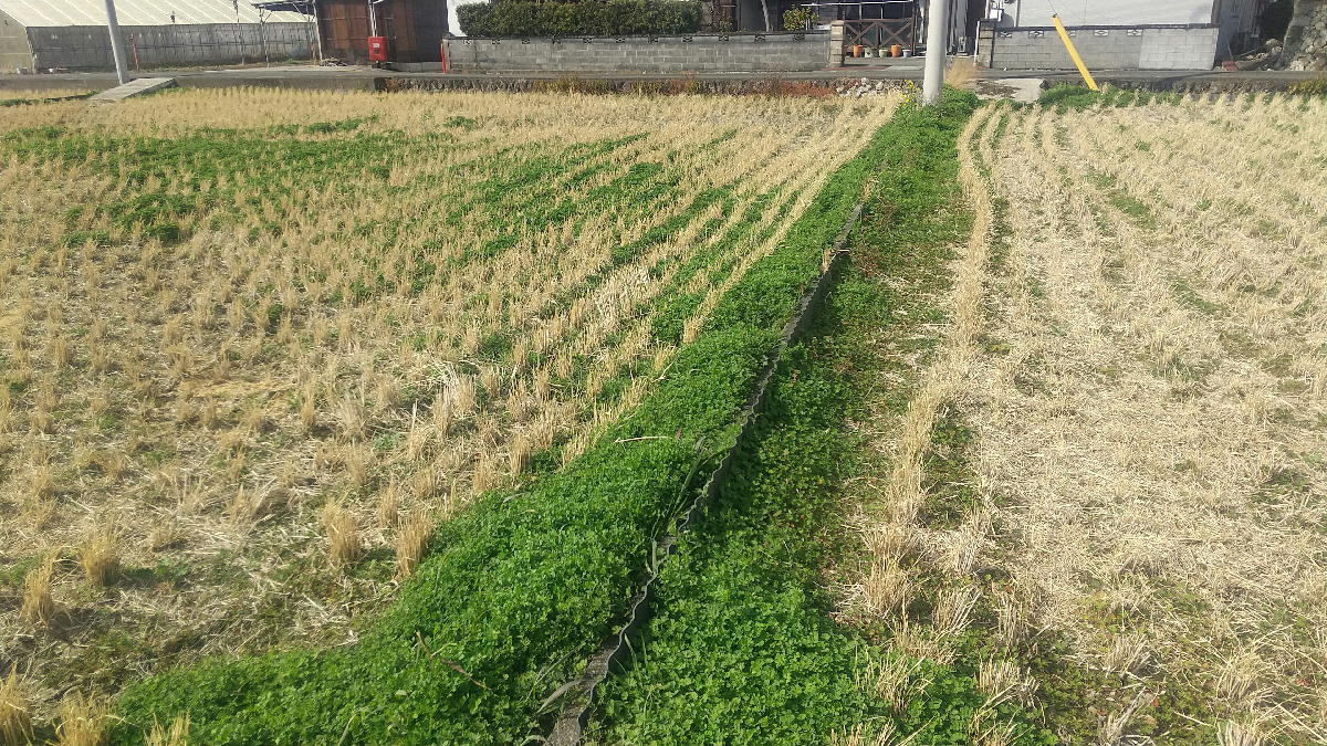 雨が降って暖かくなって、レンゲの葉が伸びてきました。