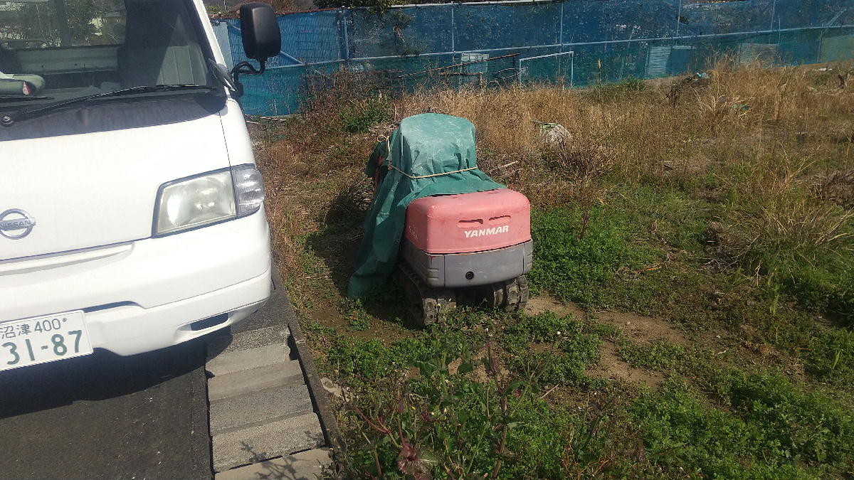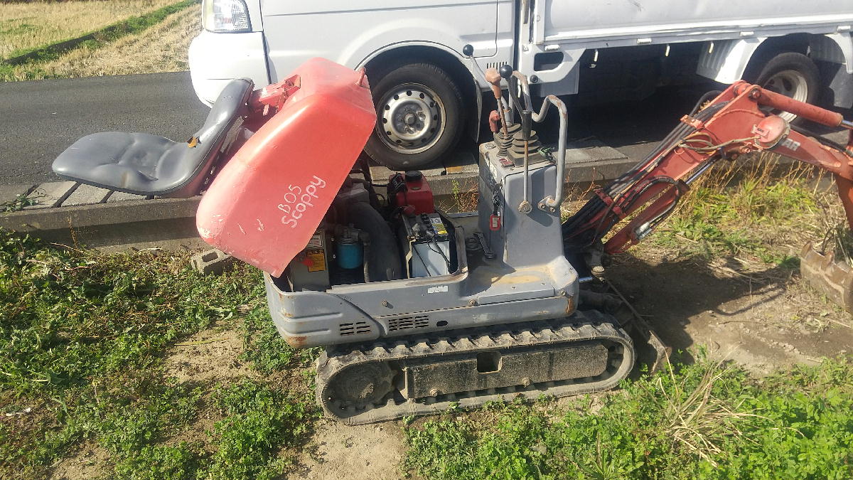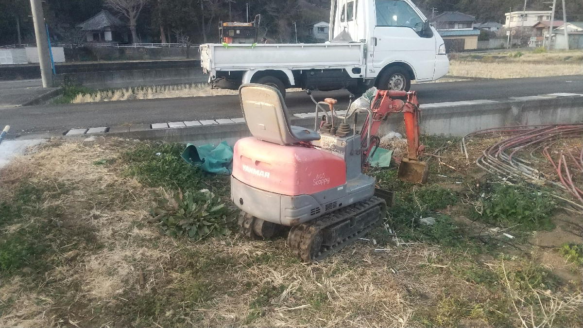 バッテリーが上がっていたので、トラックと繋いでエンジンを掛けました。