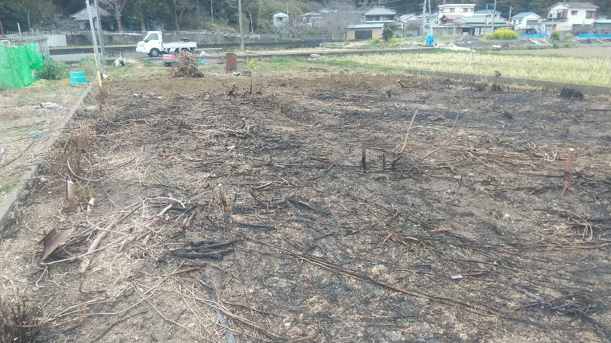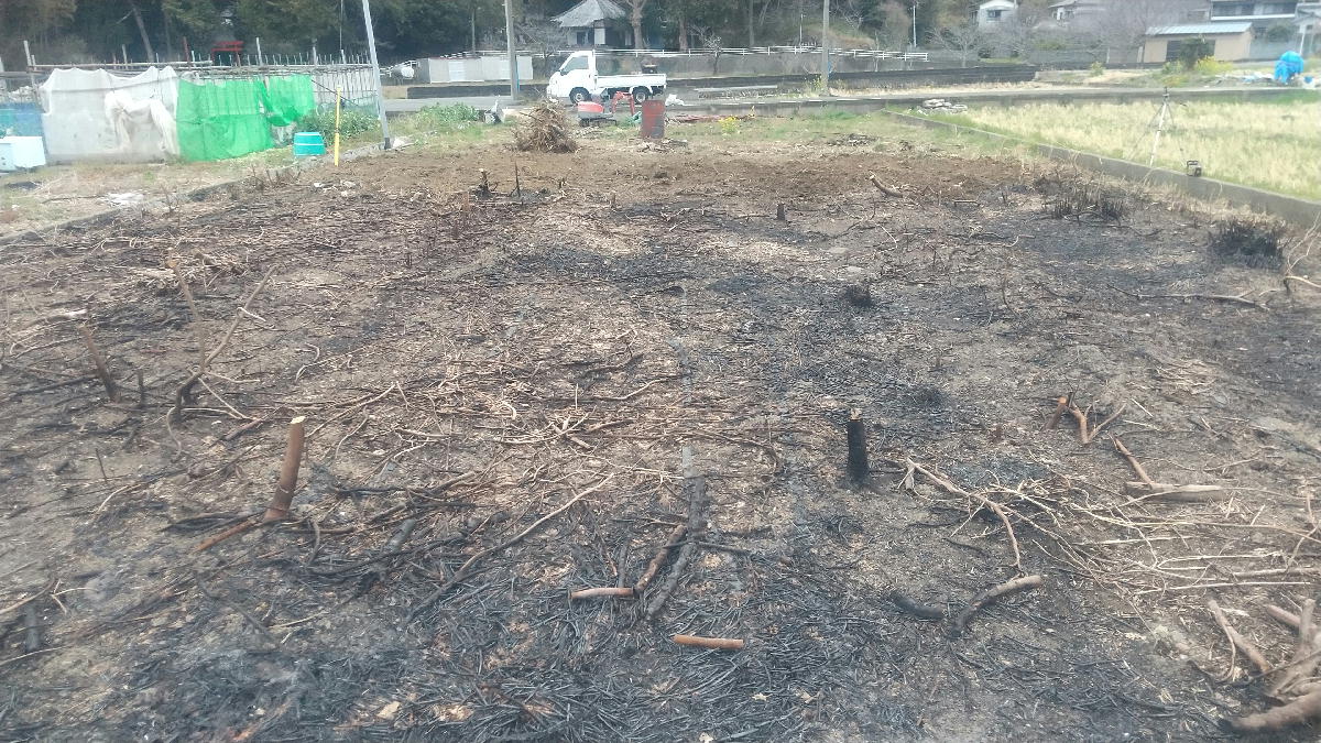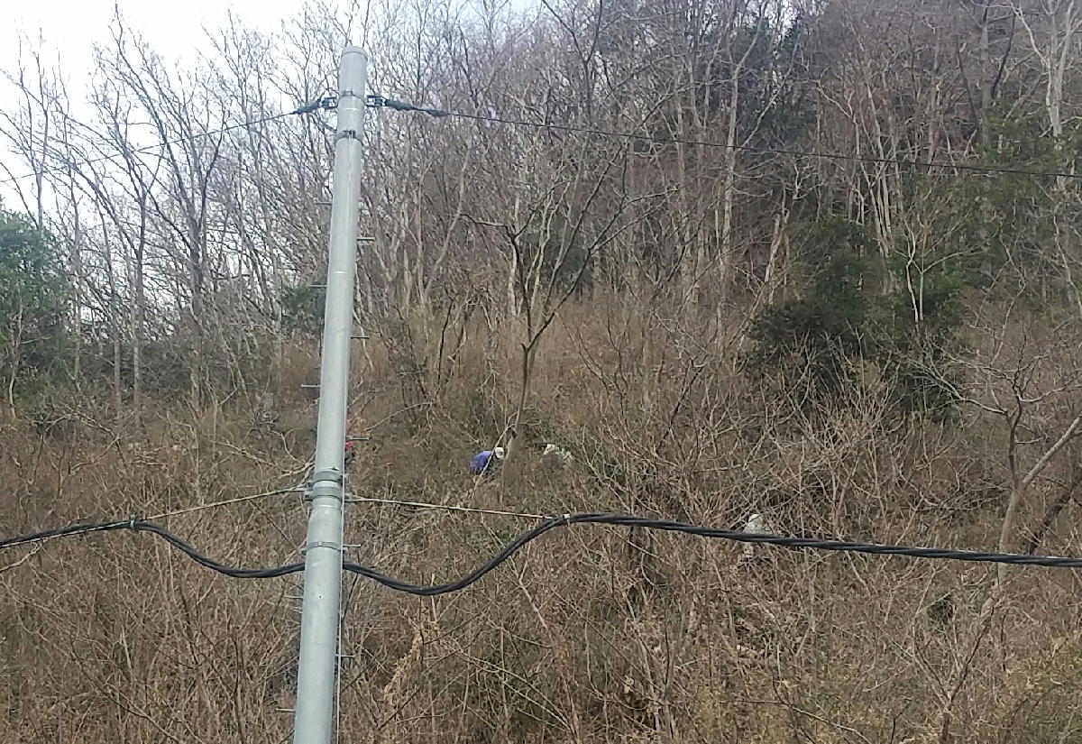ものすごい急斜面で、切るだけで体力を消耗した私は、先輩たちが降ろすのを下から見てました。