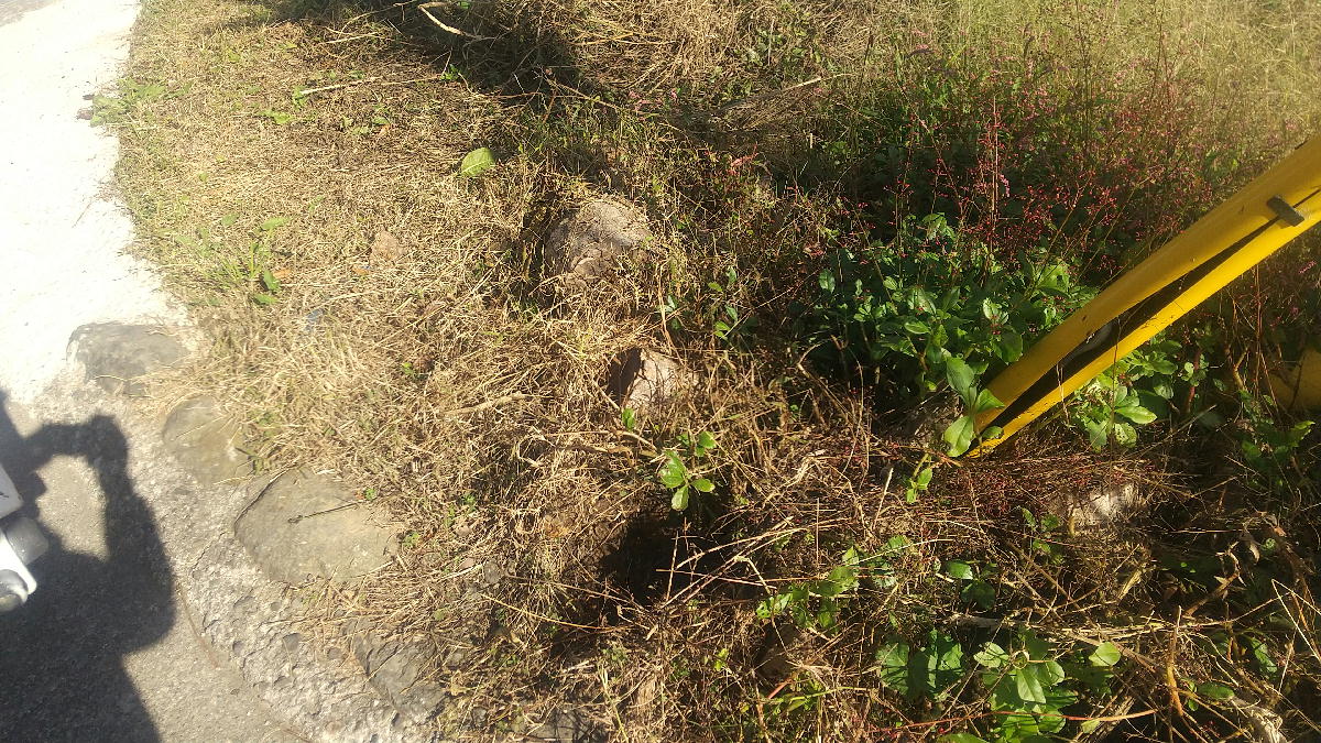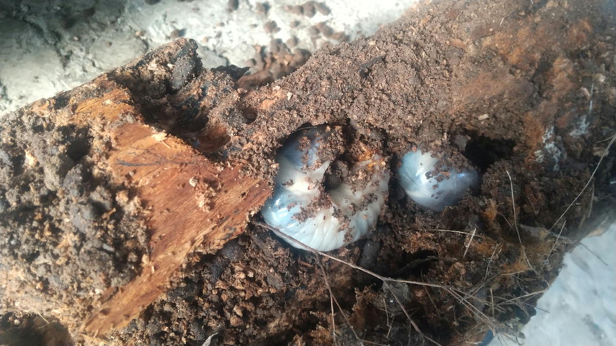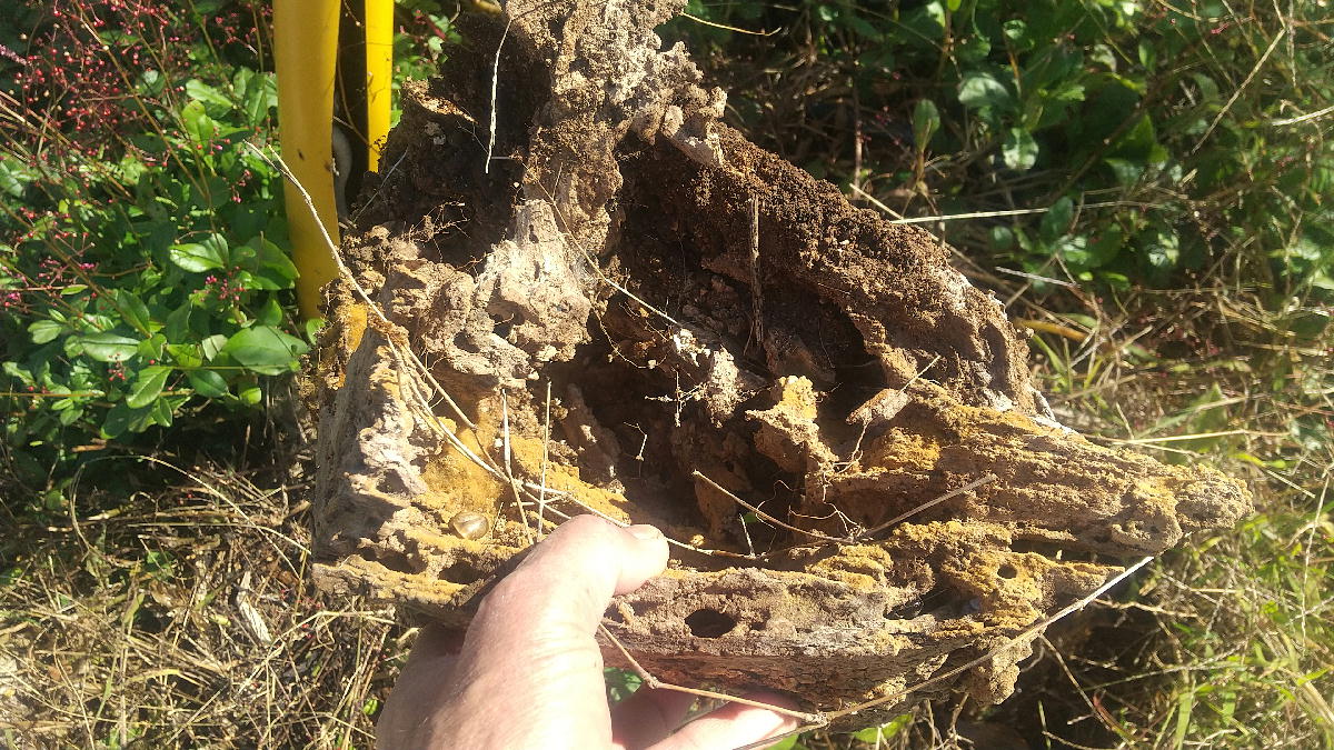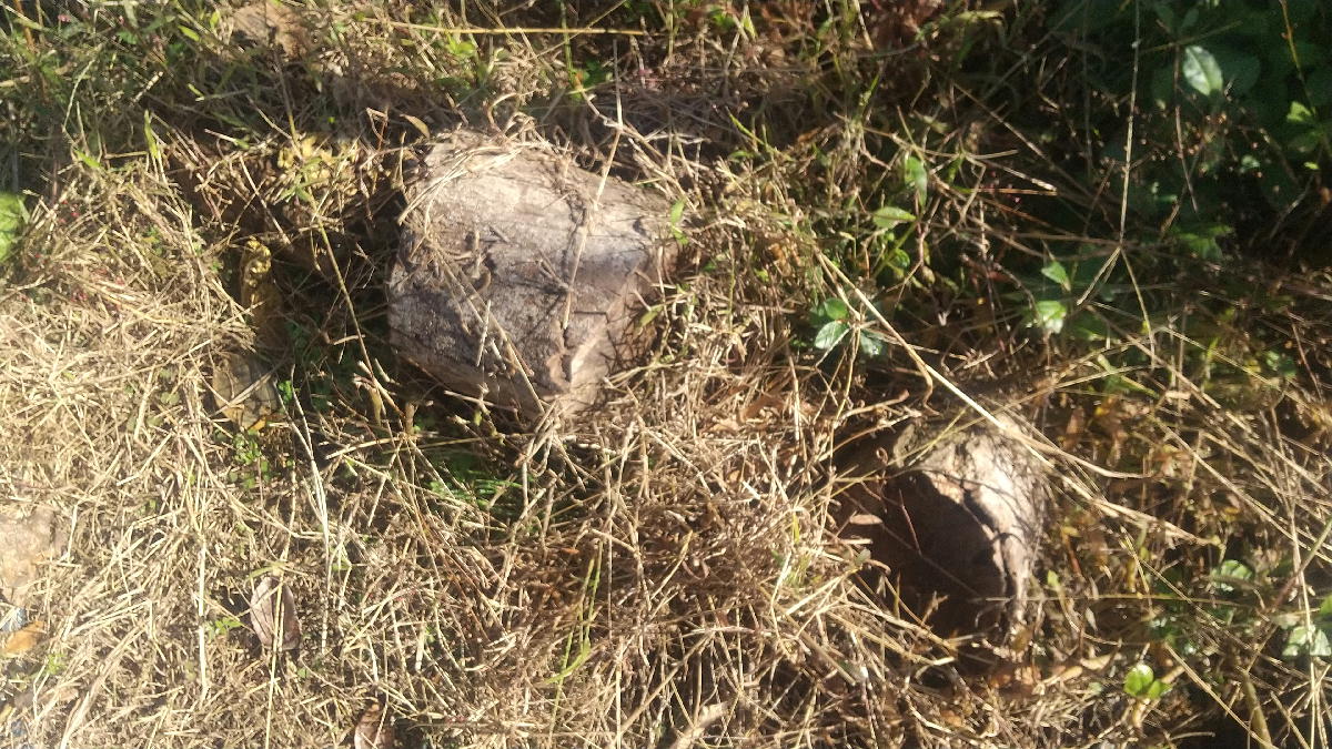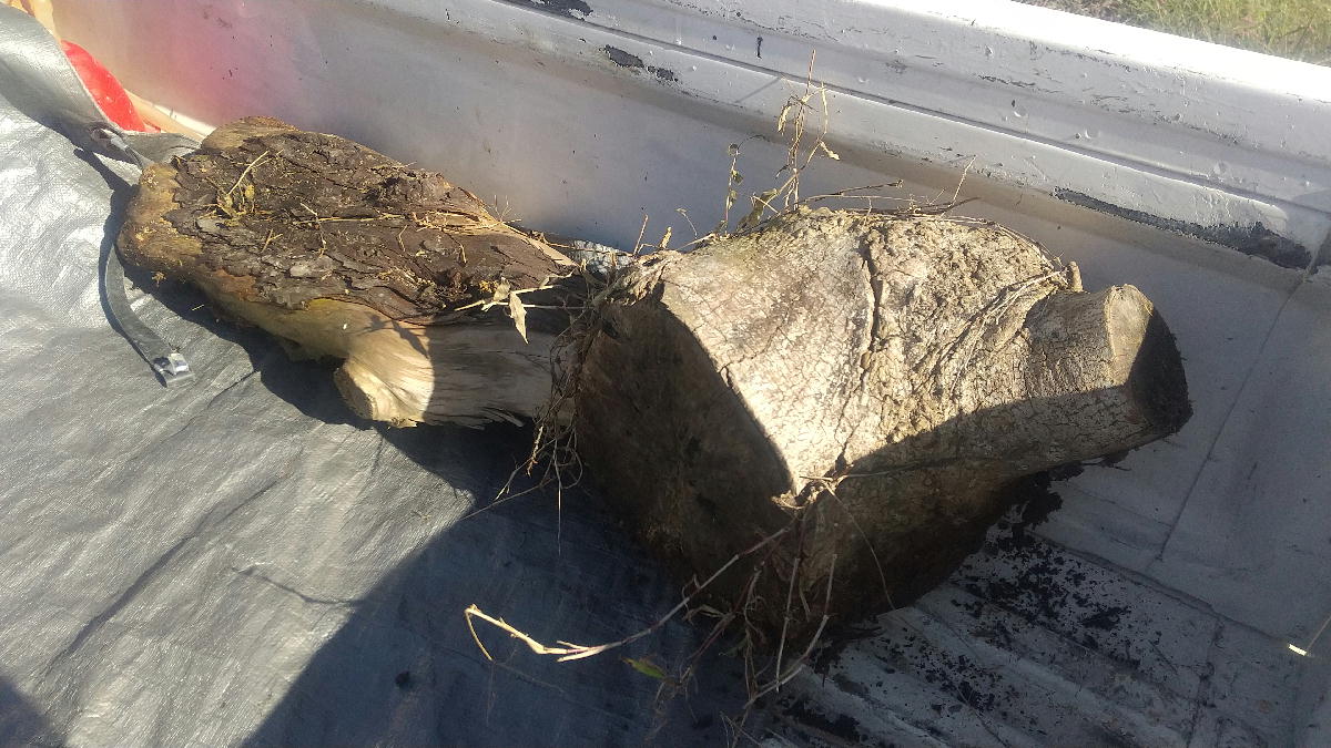 田んぼのスロープの基礎にする木の切り株を集めていました。