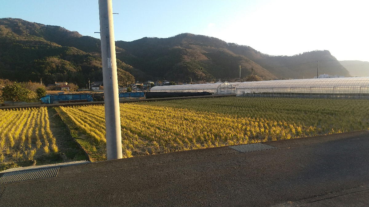 西日を受けて、山はまだ明るいです。