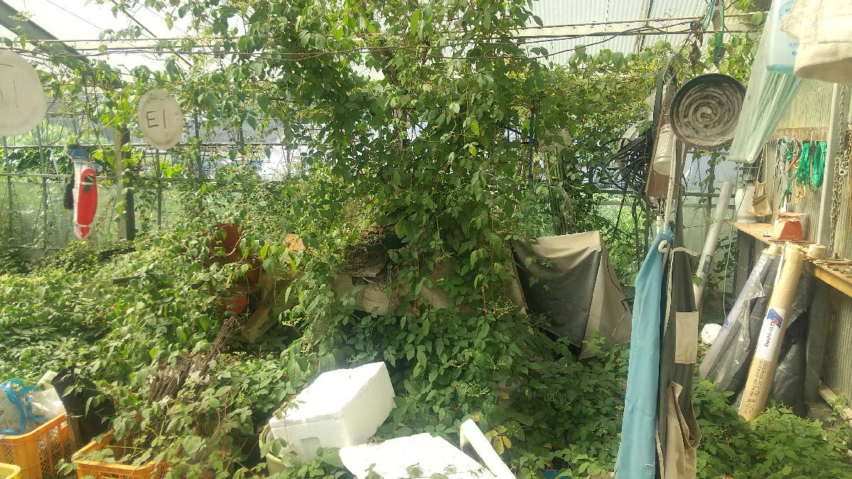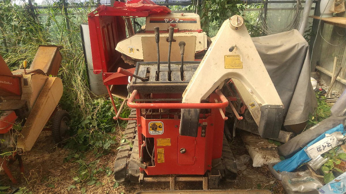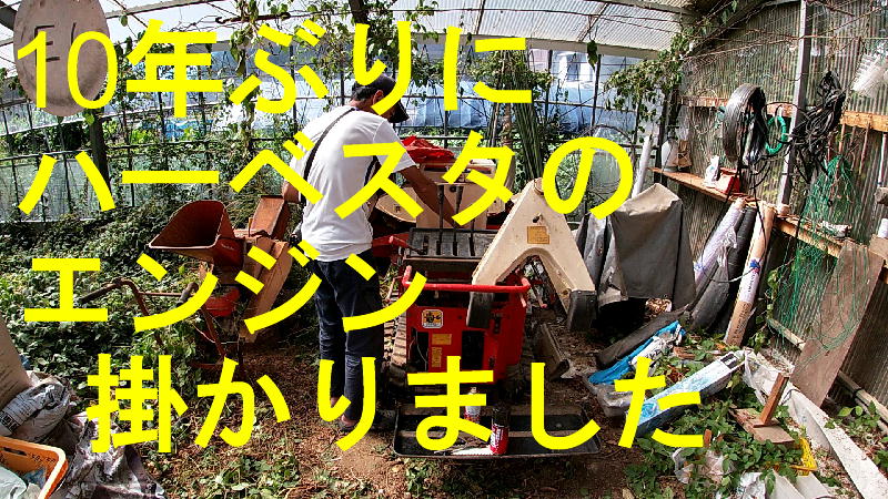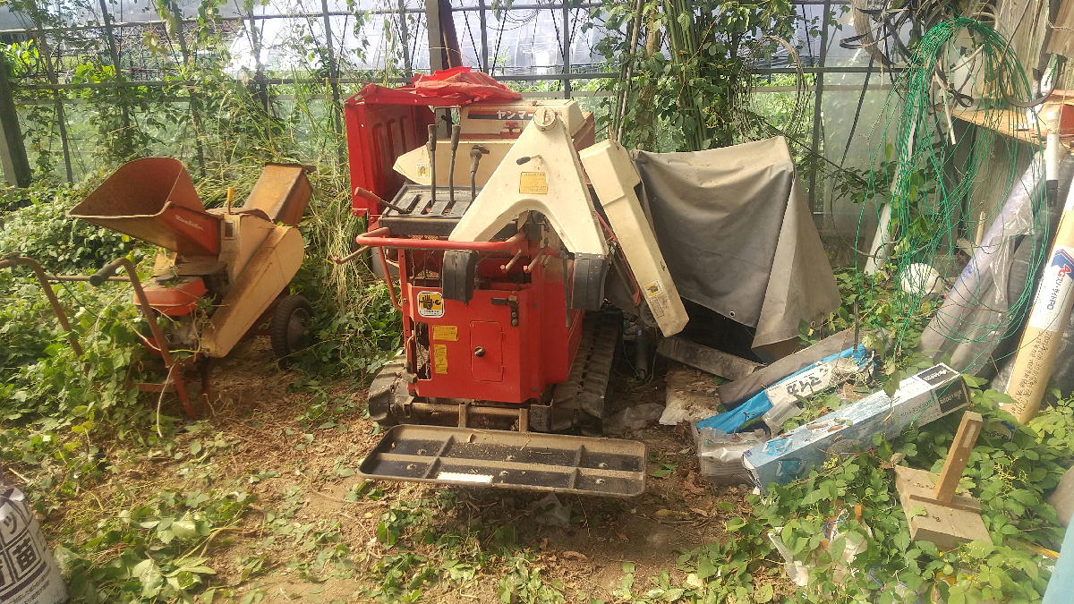 ハウスの中のジャングルから脱穀機を掘り出します。