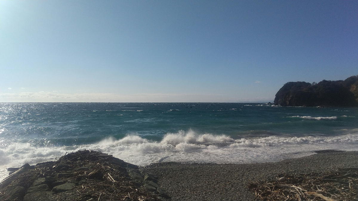 今日の午後です。 夕べからの雨がやっと上がって、晴れてきたので大浜へ行ってみました。